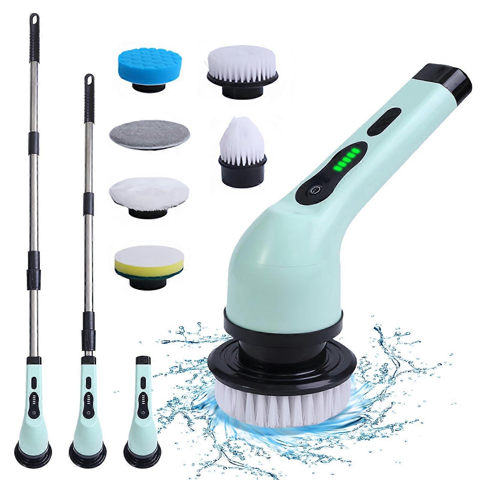 Electric Spin Scrubber, Adjustable, 9 Cleaning Heads, 6 Interchangeable Brush Heads, IPX6 Waterproof, Green