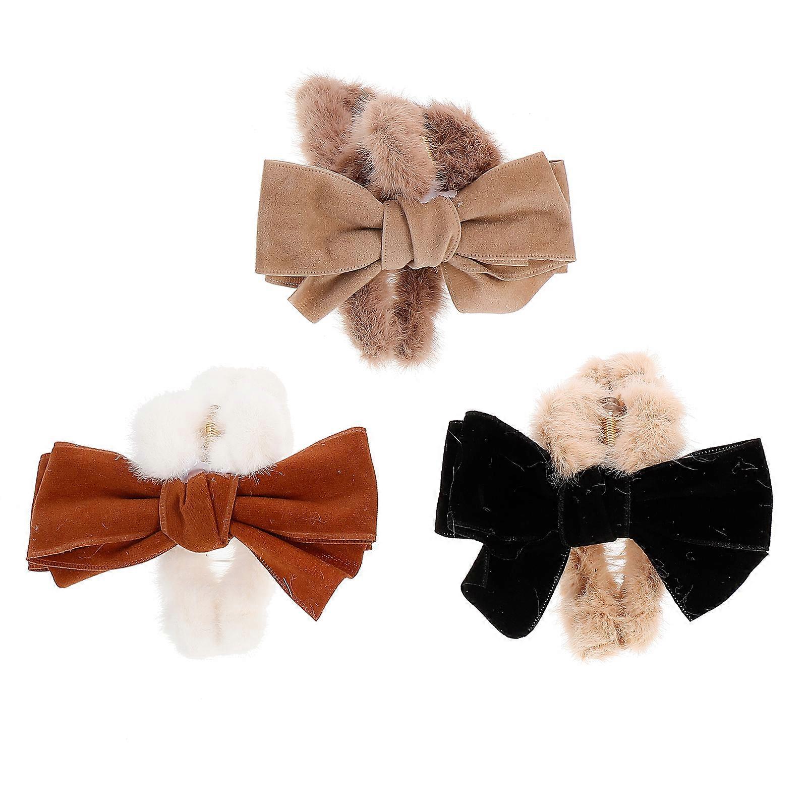 Hair Clamp Bowknot Hair Clips Tool Bathing Cooking 3Pcs Khaki