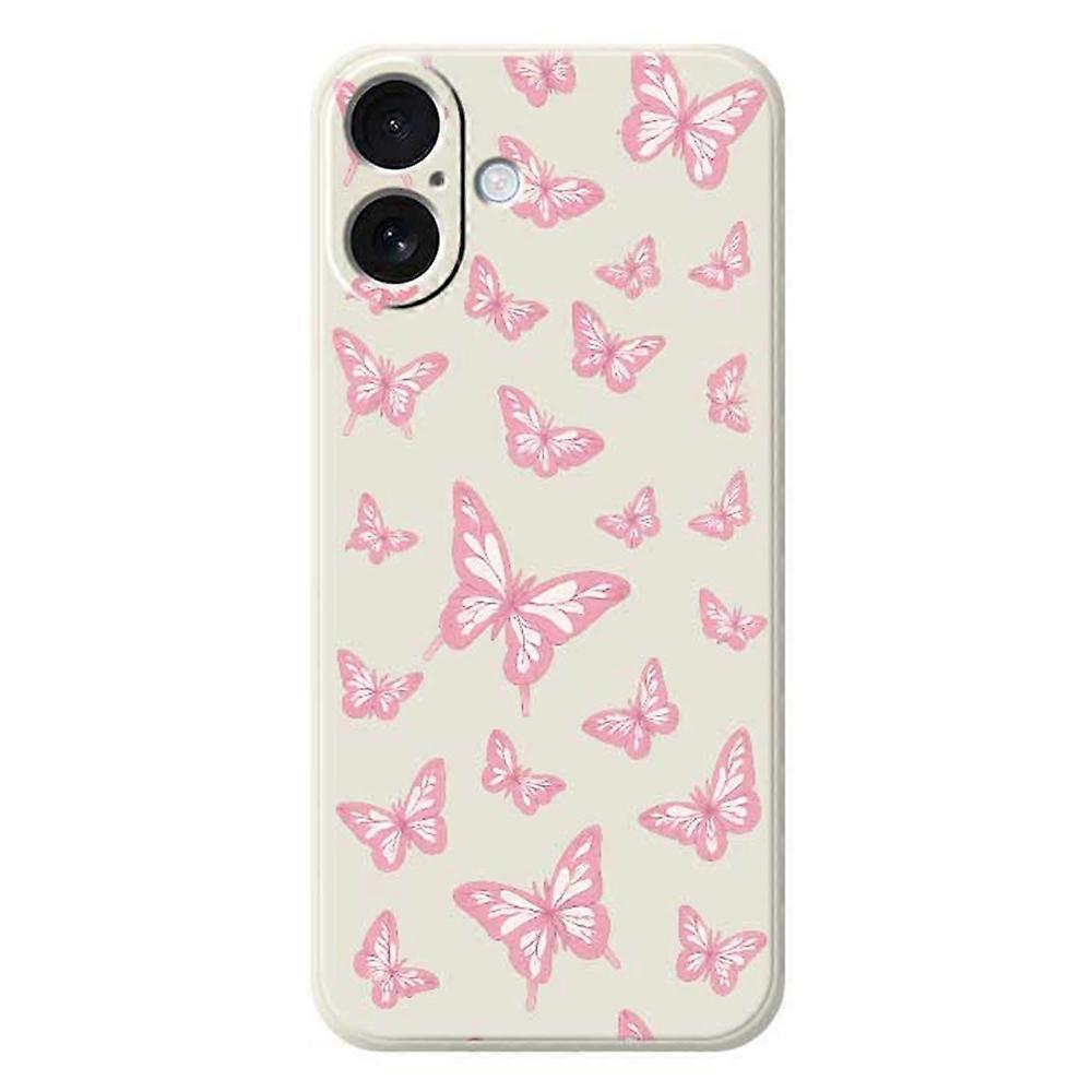 For iPhone 17 Case Pink Butterflies Pattern Printing Straight Edge TPU Phone Back Cover - Beige
