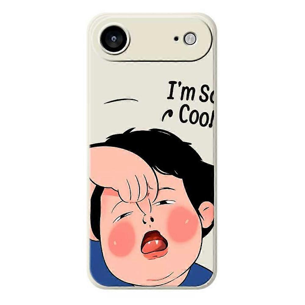 For iPhone 17 Air Case Make Faces Kid Pattern Printing Straight Edge TPU Phone Back Cover - Beige