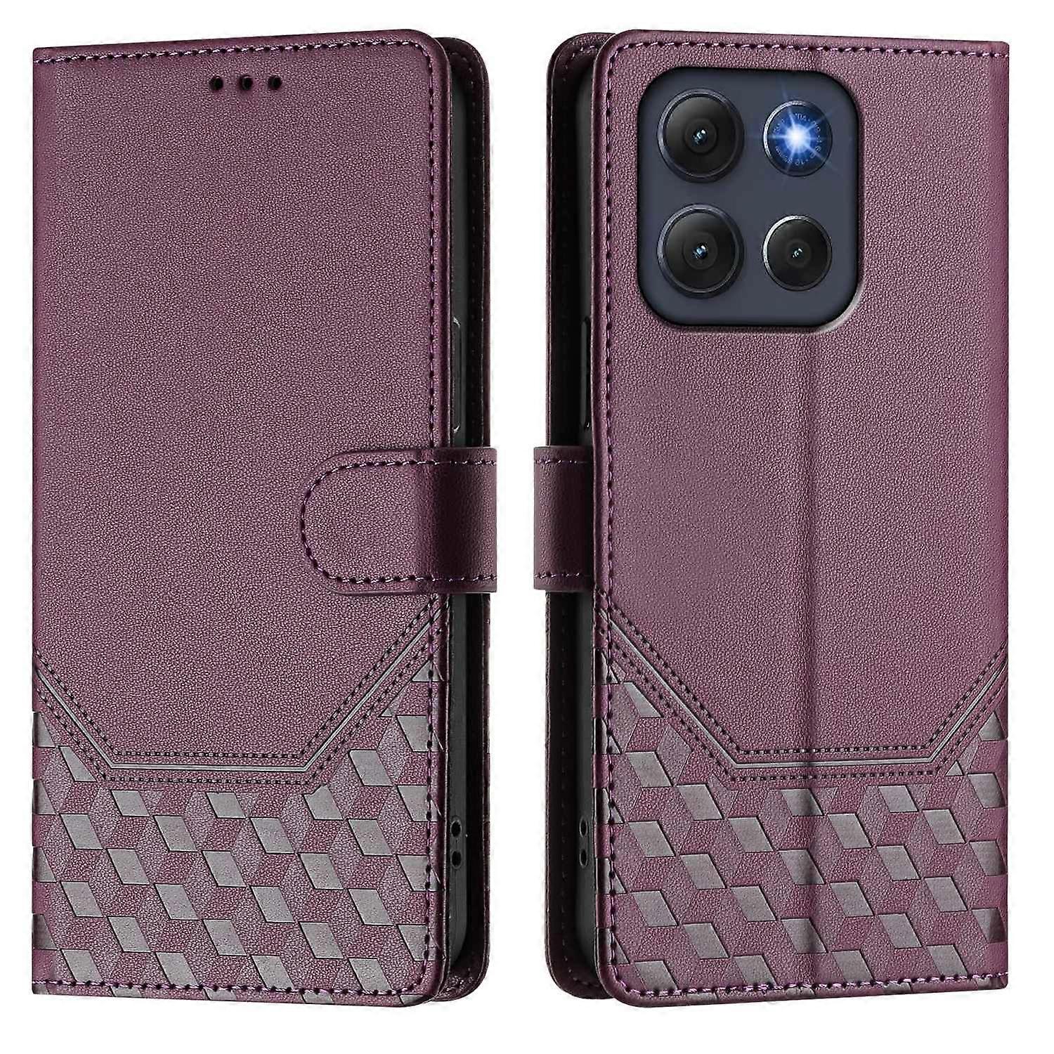 For Motorola Moto G86 5G Case Imprinted Honeycomb RFID Blocking Leather Phone Cover with Strap - Dar