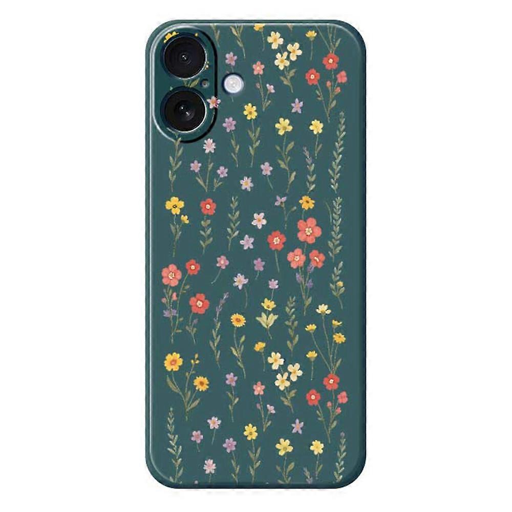 For iPhone 17 Case Flowers and Grass Pattern Printing Straight Edge TPU Phone Back Cover - Green