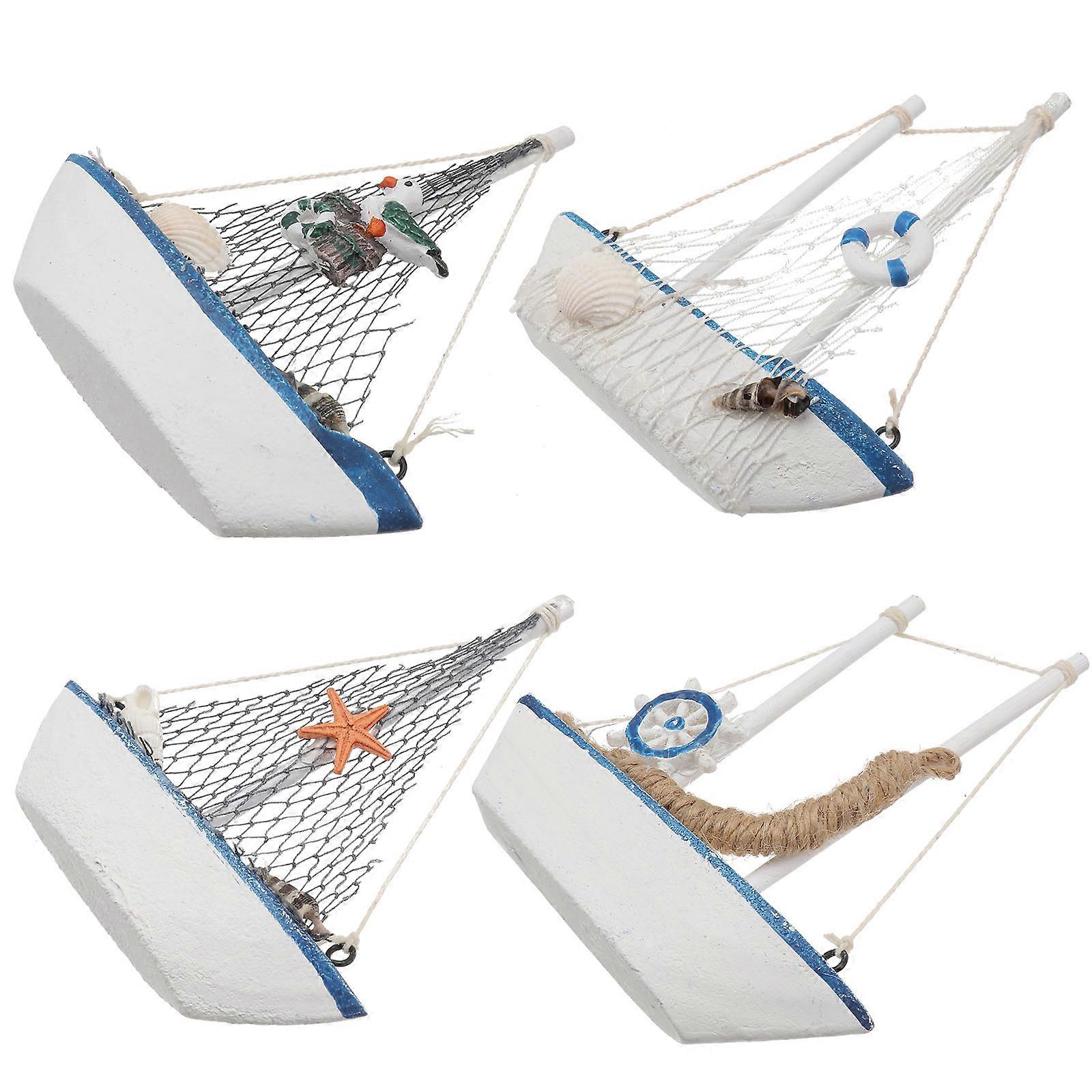 These are lovely Mediterranean sailing boat ornaments for home decoration. The ornaments are made of material, so they are no harm to your body. You can put it on your desk or other plat places you want to decorate. Features - Color: Assorted Color. - Material: Wood. - Size: 14.00X11.00X2.70cm/ 5.50X4.32X1.06inch. - The navy blue and white color is simple and elegant, design of the creative wooden sailing ship model suits any room or decoration, complete your rustic coastal theme with these sailboat ornament. - Made with excellent craftsmanship, the figurine look elegant and artistic, perfect for decoration at home or office. - An aesthetic photo prop to bright up photos. - The display sailboats are suitable for decorating room any other beach nautical themed party or event and as photo props, ect. - It is also a wonderful gift to families, friends, or guests. Package list: 4 x Sailboat Ornaments