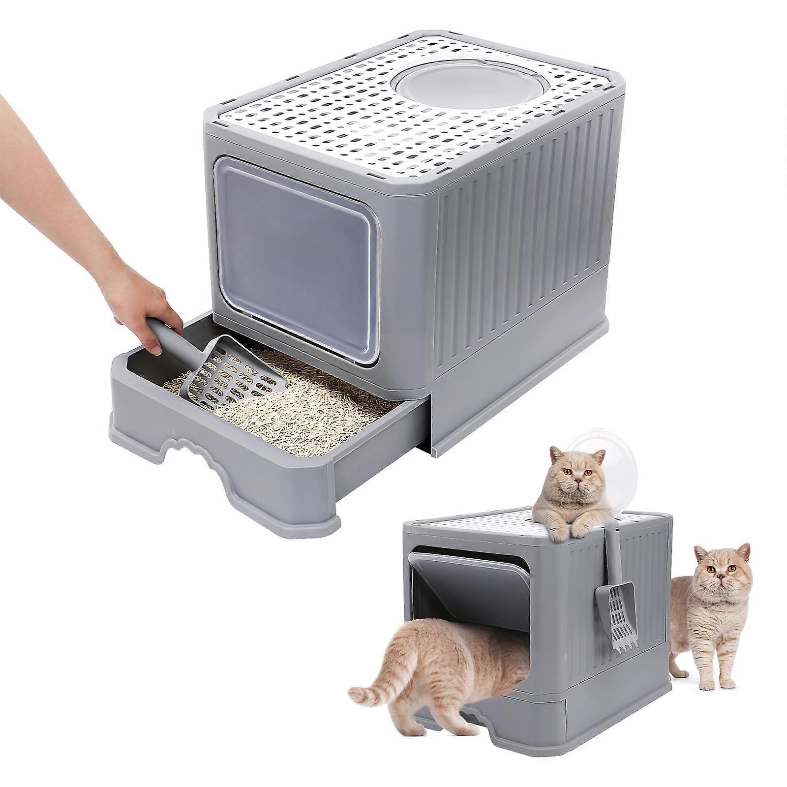 Enclosed Litter Box Large Cat Litter Box Foldable Cat Toilet Privacy Protection Grey 52x38x35CM Ventilation 1Set