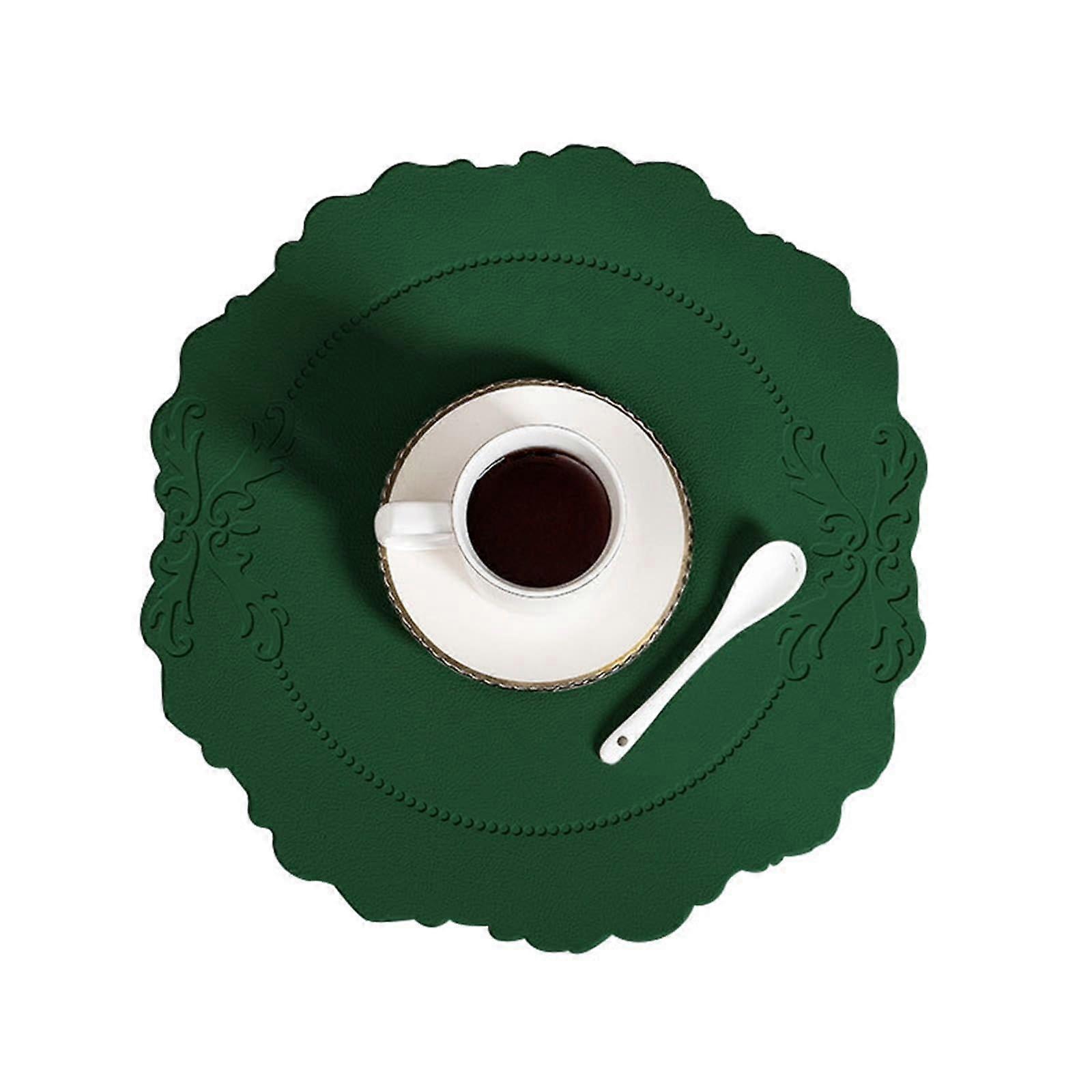 Round Washable Table Set of 2, Vintage Green PVC Leather Placemats, Heat Resistant, Irregular Floral Design, 36.5x38CM