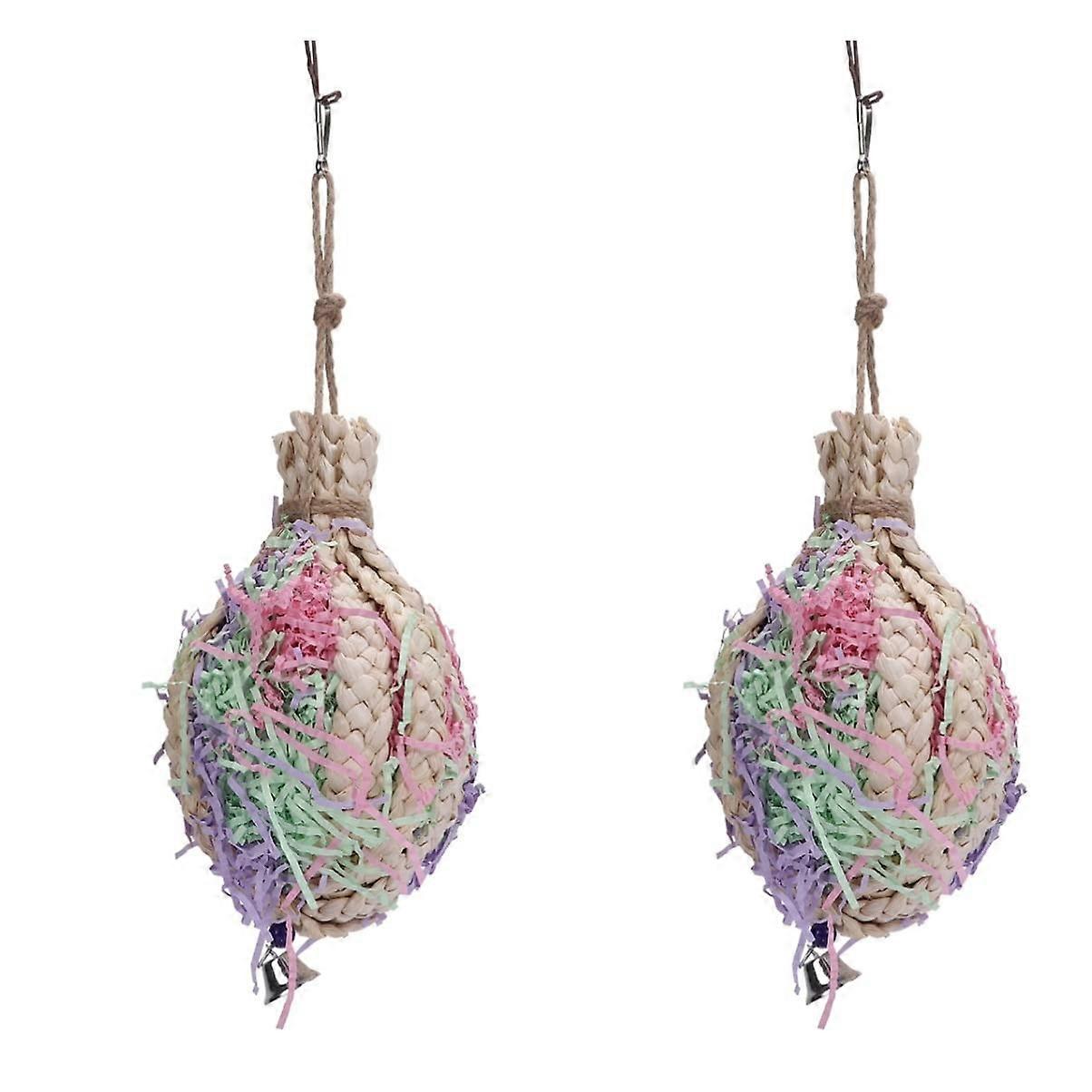 Puzzle Toy 2-Piece Parrot Ball Toy Brushed Grass Parakeet Sepak Takraw Pendant Parrot Straw Ball Parrot Rattan Balls