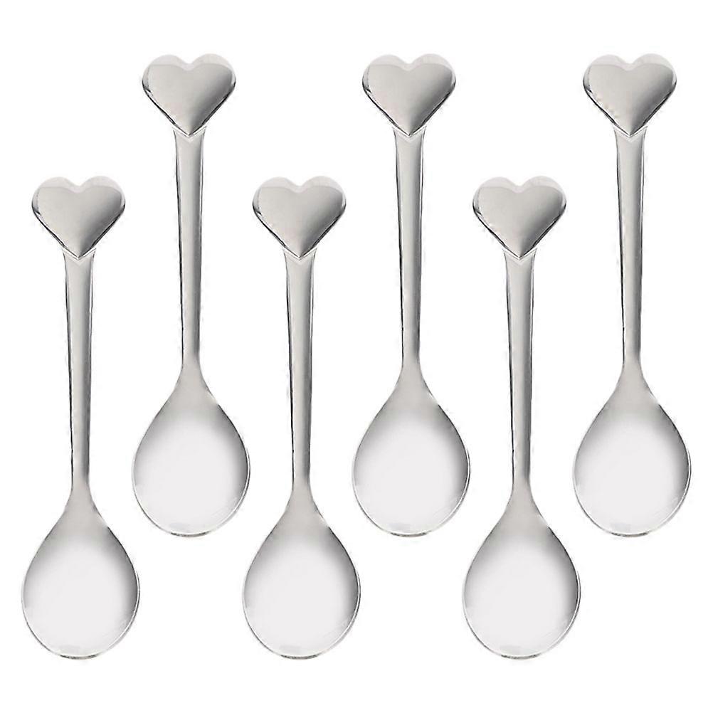 Kitchen Use Stainless Steel Spoons for Mixing 6Pcs Heart Shaped Silver