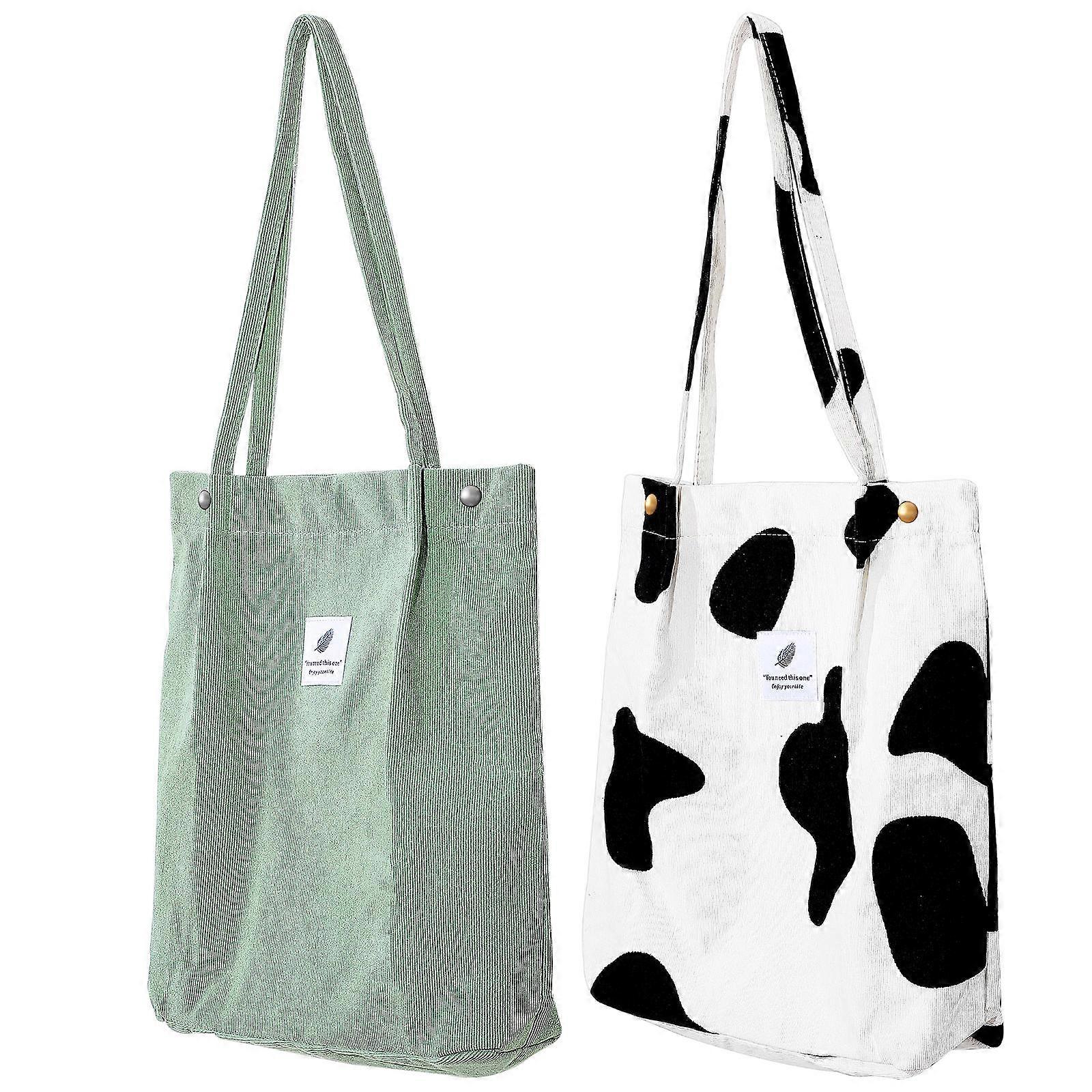 Casual Tote Bags for Women Stylish Corduroy Shoulder Handbags with Cow Print, Large Capacity for Shopping, Beach, School, and Travel Use