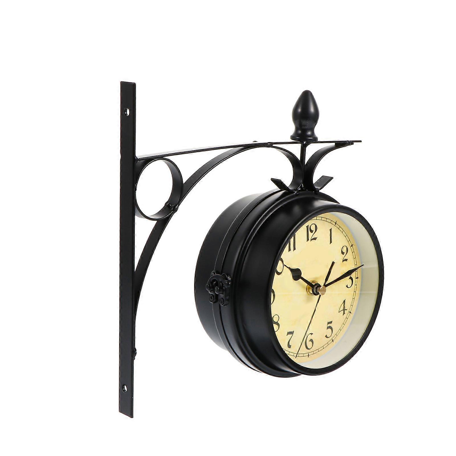 Retro Double Sided Wrought Iron Wall Clock, European Vintage Style Hanging Clock for Home and Office Decoration