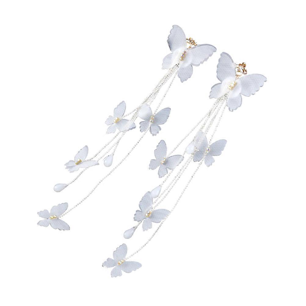 White Butterfly Yarn Long Design Ear Clips Non-Piercing Earrings