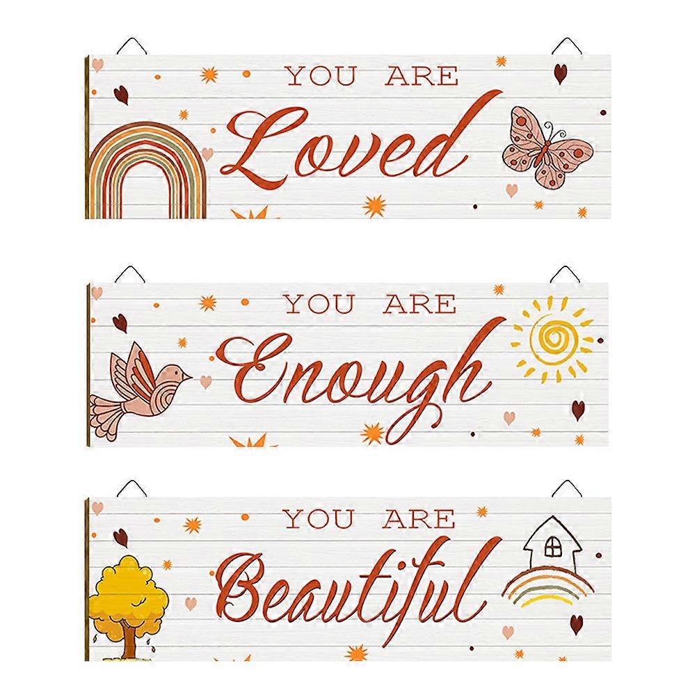 Inspirational Hanging Sign Plaque Rustic Wall Hanging Plaque Wall Art Sign Home Decor Wooden Assorted Color Decorative 3Pcs