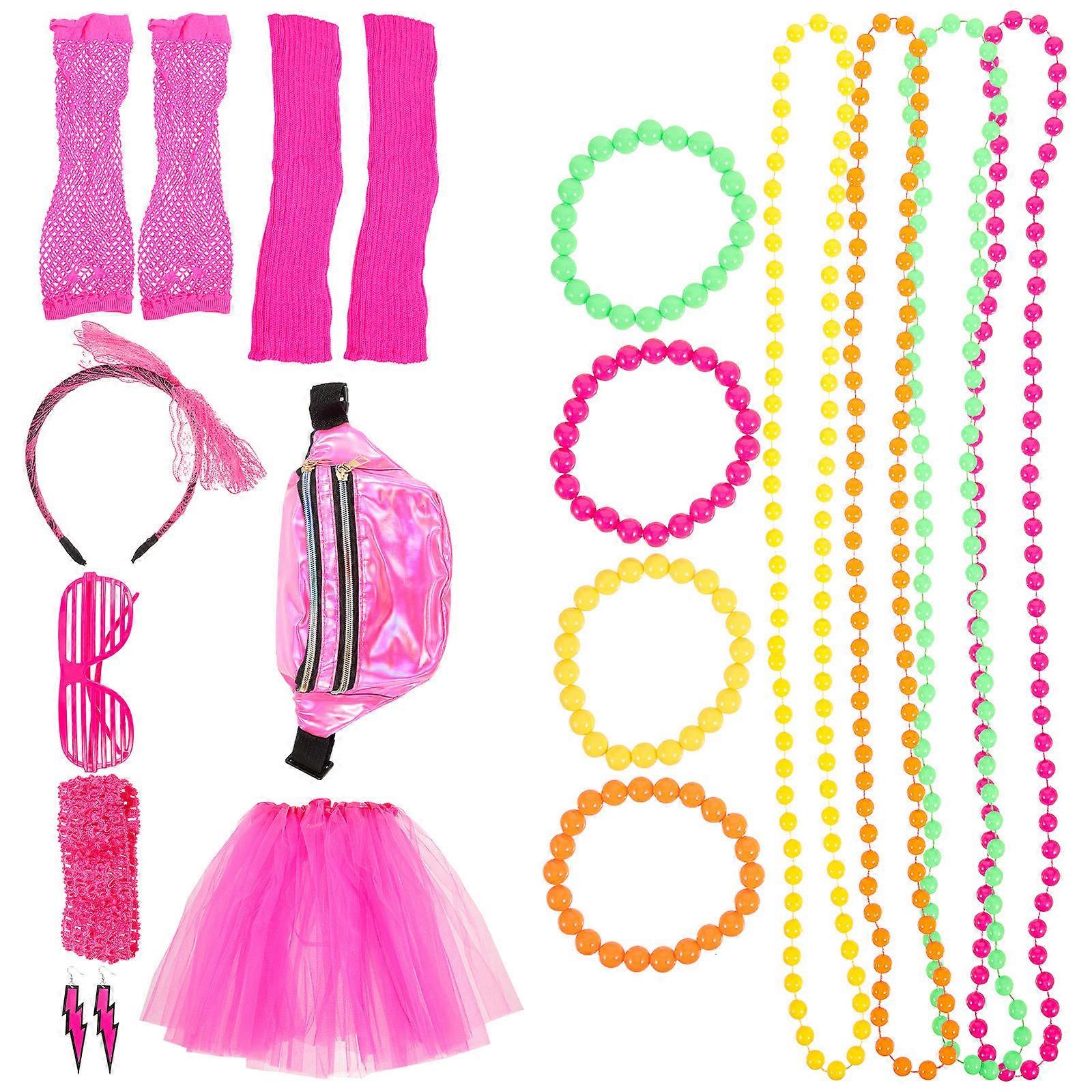 Costume Accessories Set for Women – Fishnet Gloves, Tutu Skirt, Necklaces & Bracelets for Retro Parties and Events