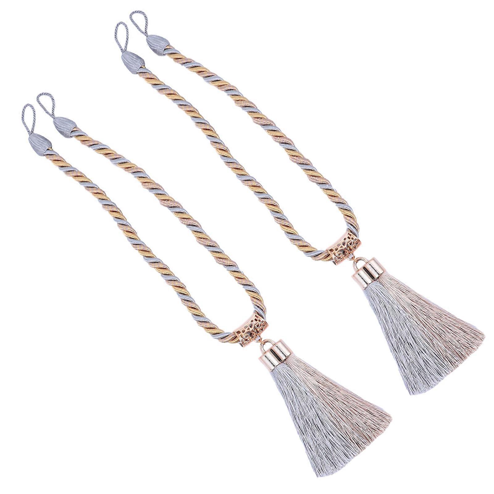 Curtain Tieback 1Pair Grey Polyester Hand Woven Curtain Tiebacks Multi-Purpose Use for Curtains
