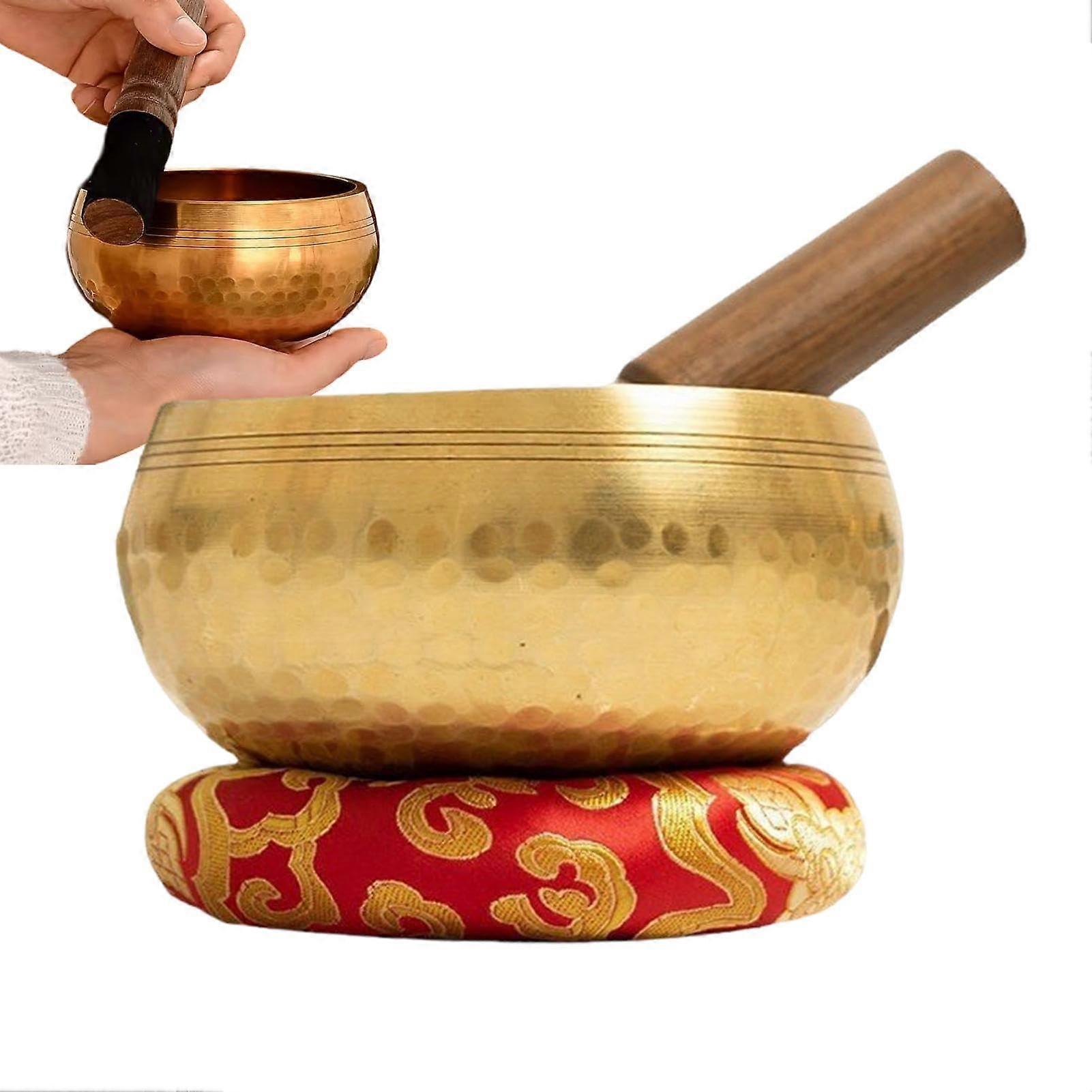 Tibetan Singing Bowl Set Handcrafted 8.5 cm Diameter With Cushion Mallet For Yoga Meditation Mindfulness Chakra Balancing