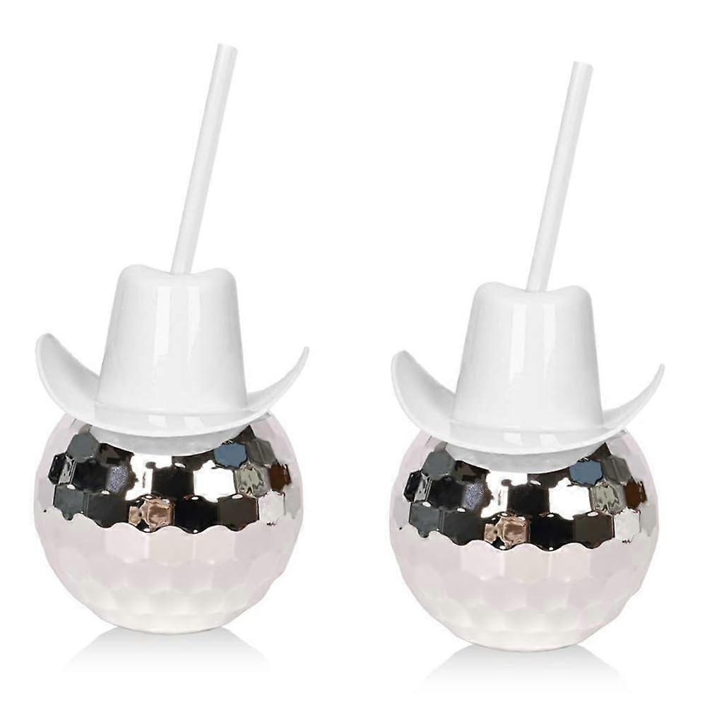 Disco Ball Cups Set Of 2 With Straw Silver And White Flash Ball Cocktail Cups Cowboys Hat Style Durable