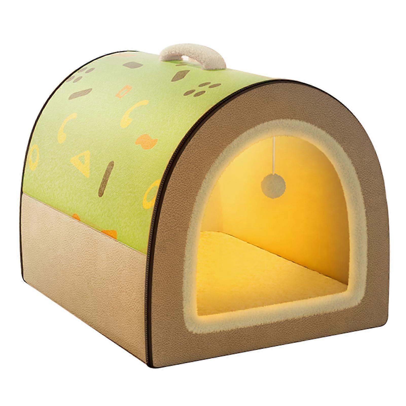Large Dog Kennel Winter Pet Bed Four Seasons Dog Cave Indoor Cat House Green L 60 X 47 X 42 Cm Plush Cushion Washable
