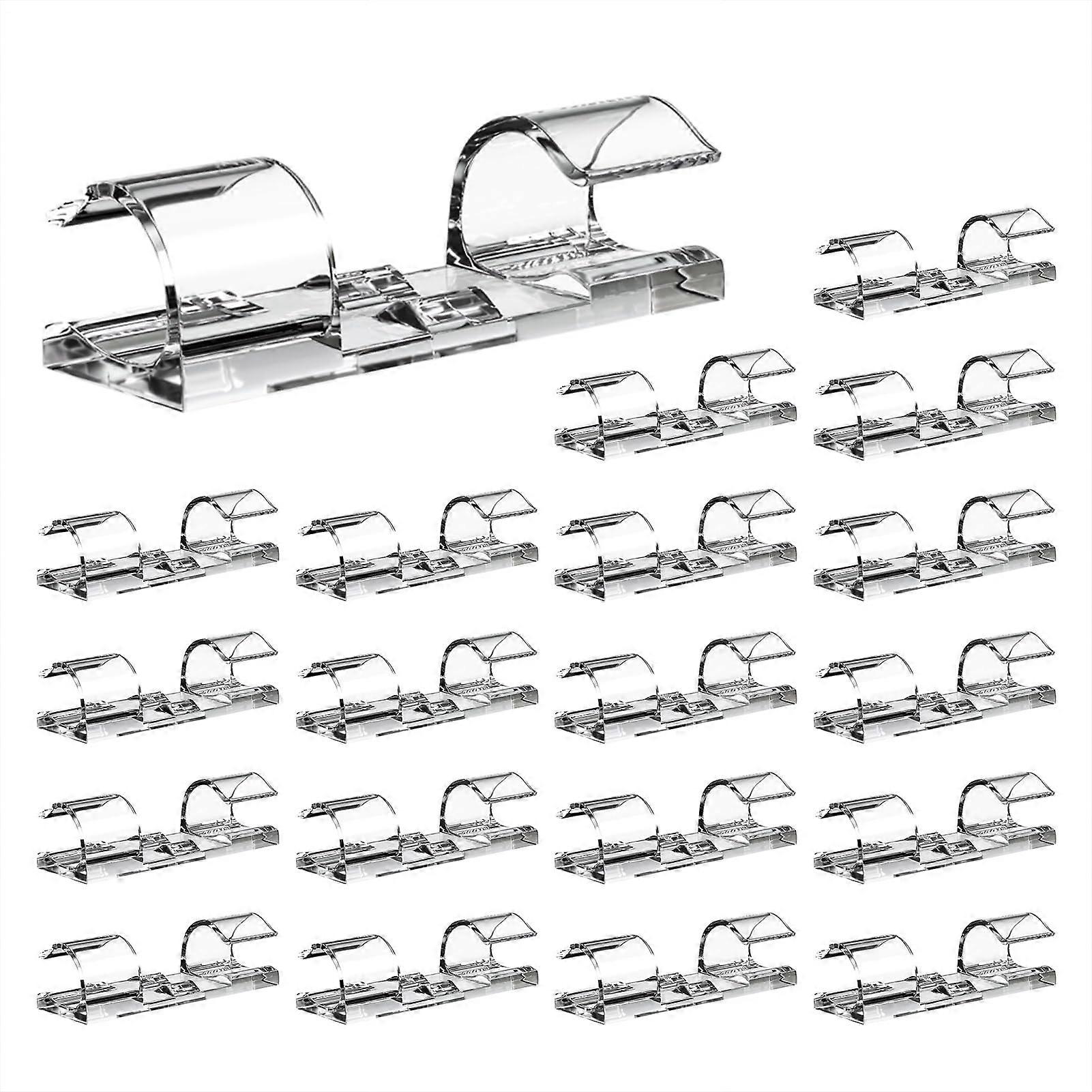 Kabelclip 20pcs Clear Adhesive Cable Clips | Strong Wall Wire Organizers | Transparent Desk Cable Holders