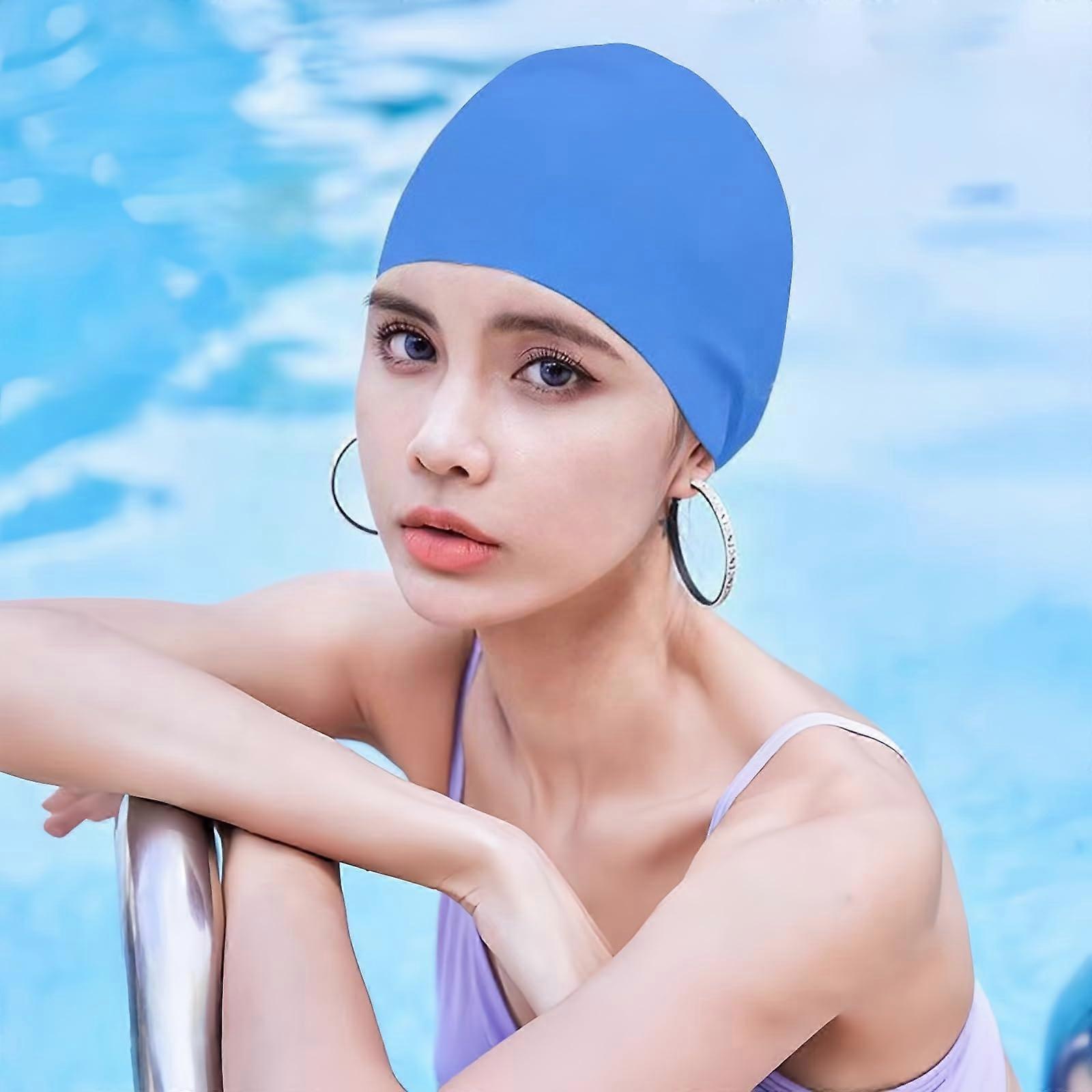 Silicone Swim Cap Unisex - Waterproof Long-Hair Comfort For Pool Lake Sea - Sky Blue 20.5 x 19.7 cm
