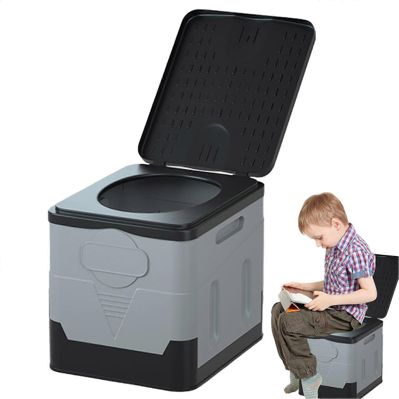Folding Toilet 20 L Capacity Camping Potty Portable Outdoor Toilet, Leak-Proof Bucket, Dark Gray