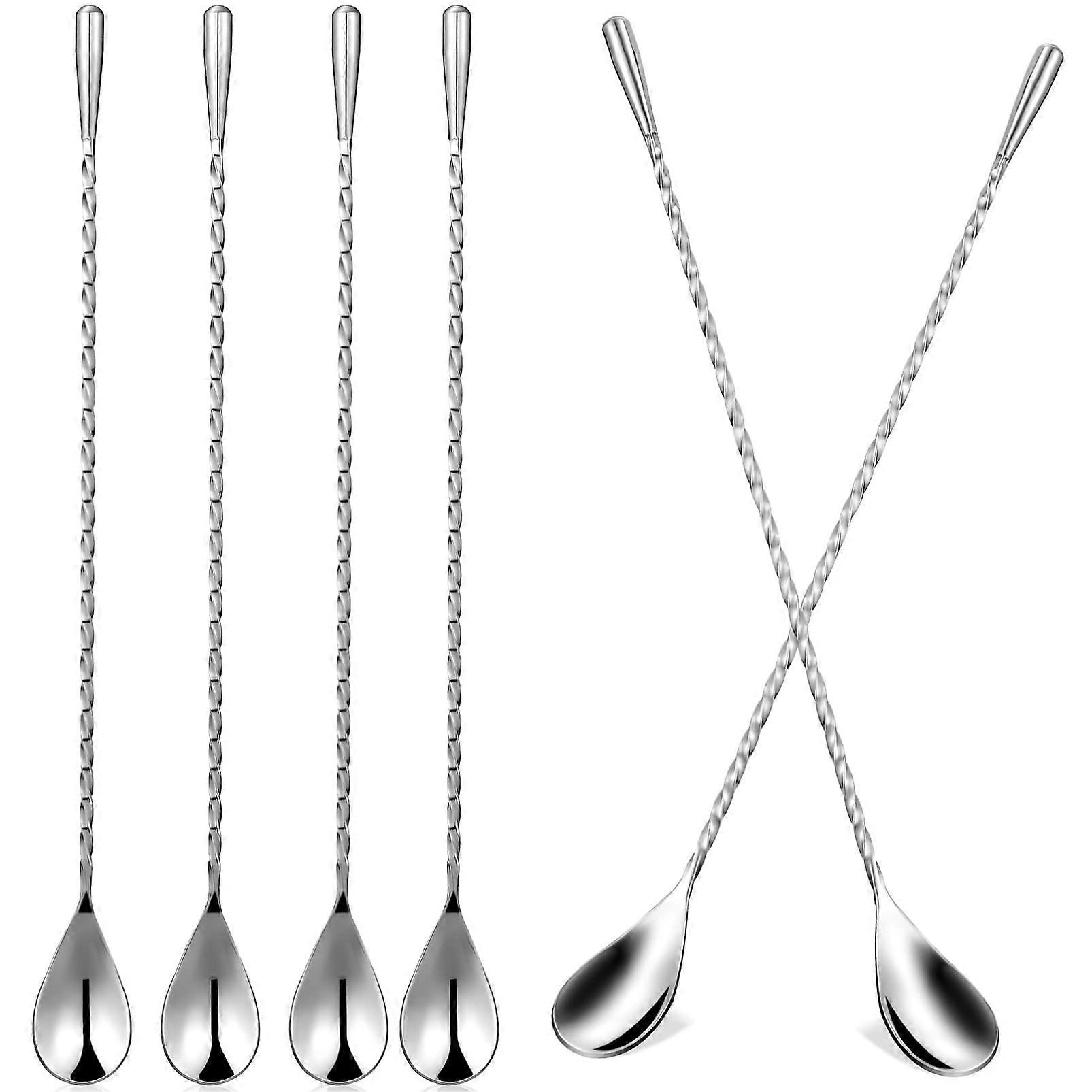 6 Piece Long Cocktail Stirrers Stainless Steel Bar Spoons Rustproof Lightweight Easy To Clean For Cocktails And Coffee