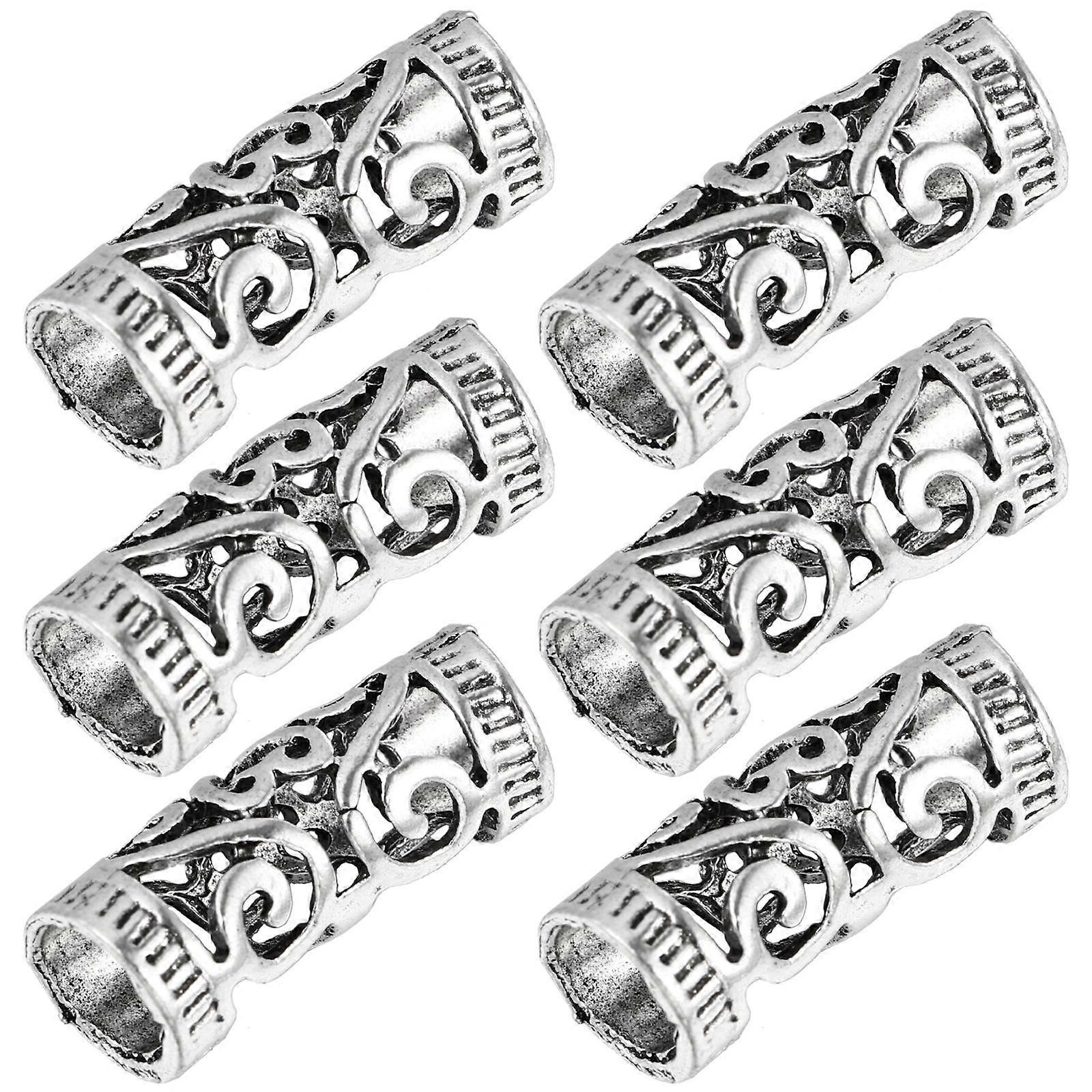 Alloy Hair Cuffs Dreadlock Rings for Hair Decoration 6Pcs Silver Set