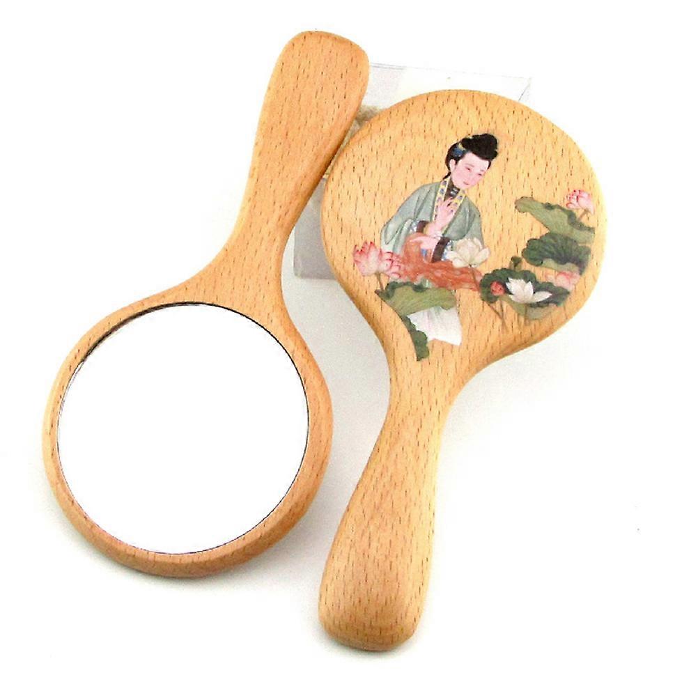 Handheld Makeup Mirror Wooden Retro Portable Beauty Salon Use 18X9CM The Original Wood Color For Women 1Set