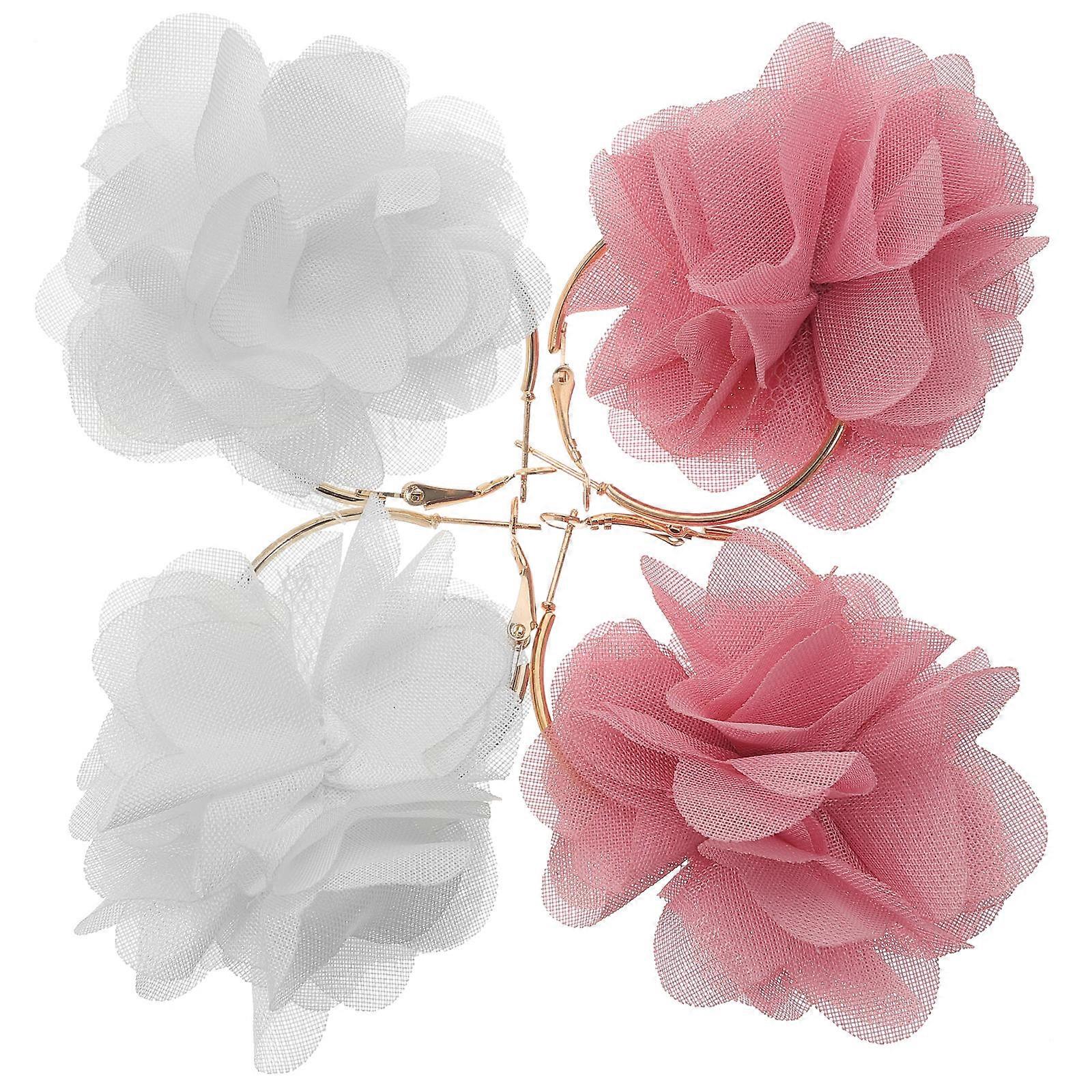 Fashion Assorted Color Earrings for Women with Flower Design Alloy Material 2 Pairs