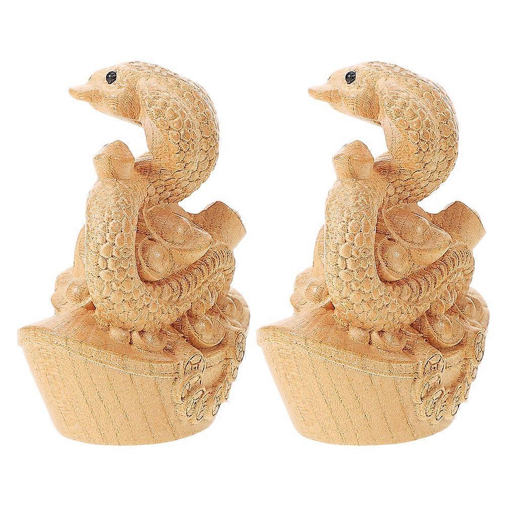 Wood Snake Figurine Decor for Chinese New Year 2Pcs Hand Carved Sculpture