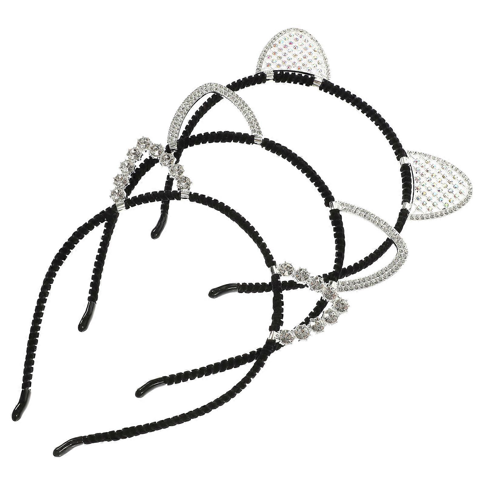 Rhinestone Cat Ears Headband Hair Decoration For Teenagers Various Occasions 3Pcs