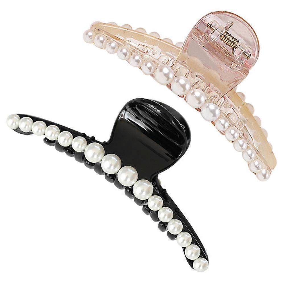 Ladies Fashion Accessories Pearl Hair Claw Teeth Design for Various Hair Types Daily Life 2Pcs