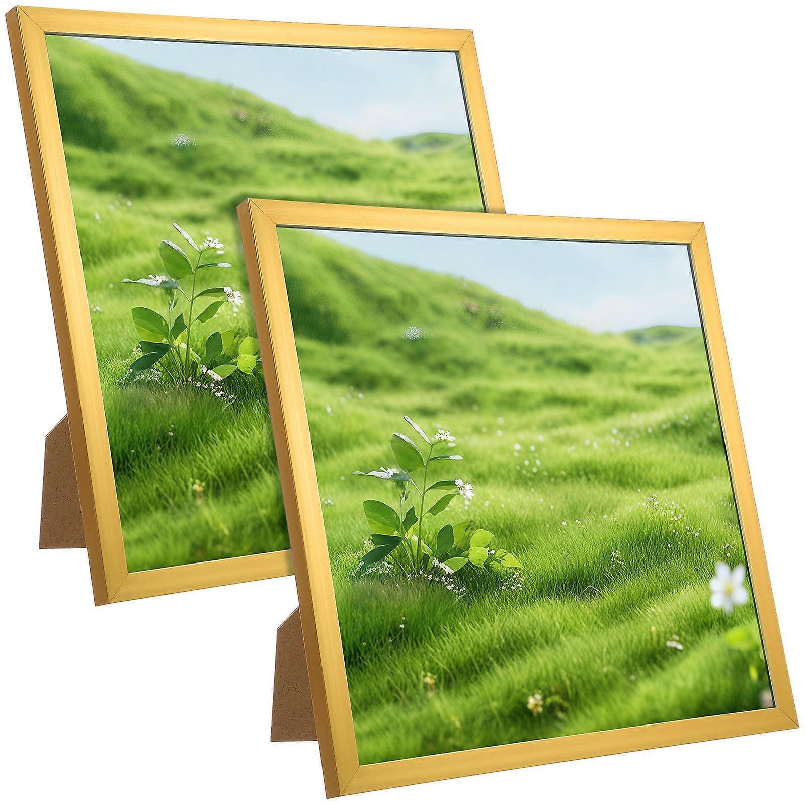Cute Picture Frames Wall Hanging Family Photos Holders Golden 25.40X25.40X1.50CM Square Minimalist Home Decor 2Set