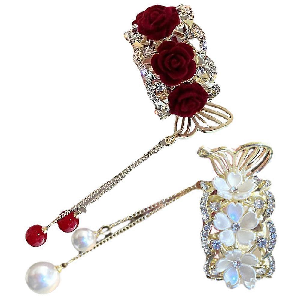 Ponytail Cuff Accessory Metal Hair Cuffs Floral Shape Tassel Design Firm Hold For Women 2Pcs