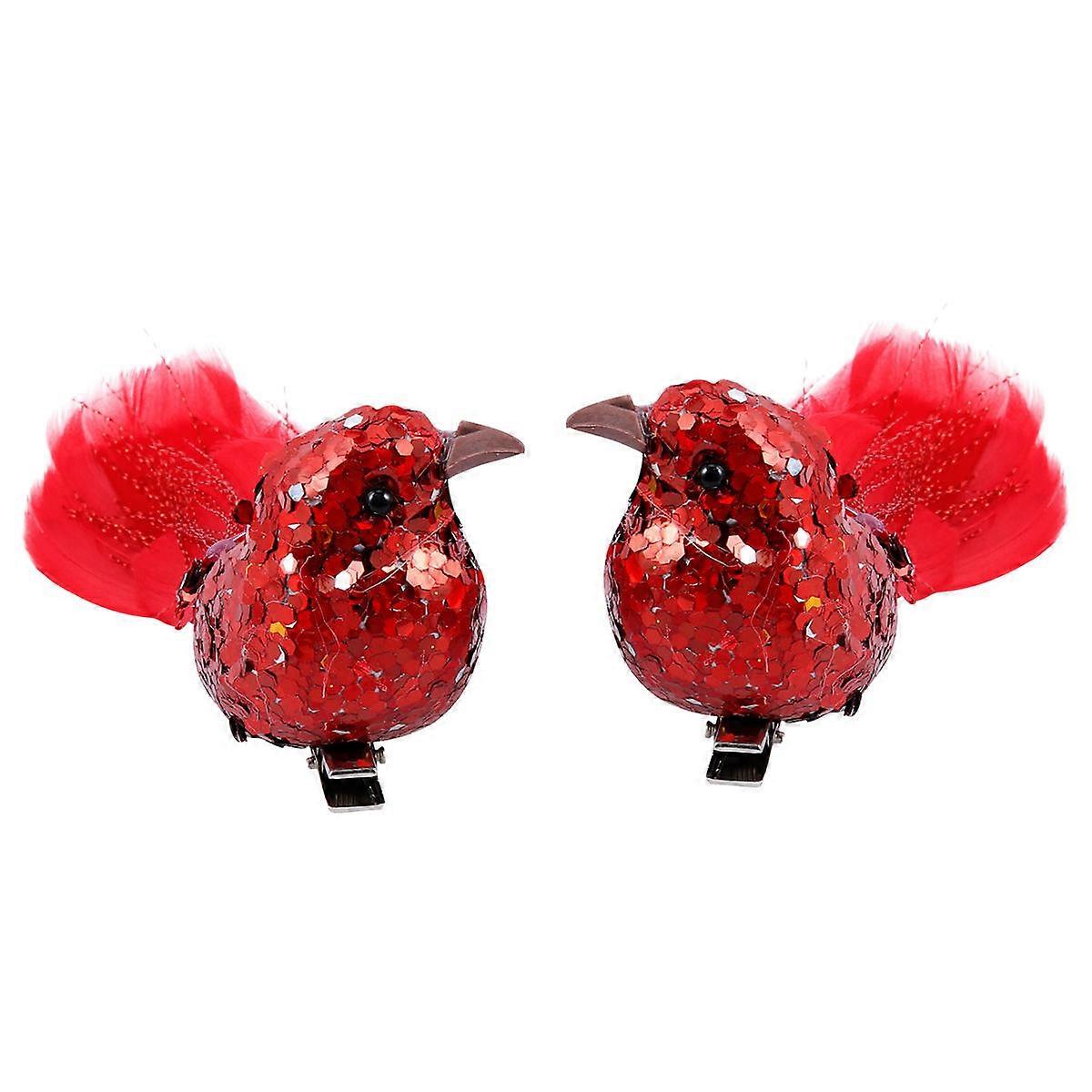 Holiday Hair Accessories For Kids Bird Shape Headdress Christmas Party Tree Decoration Red Sequins 13X5CM 2Pack