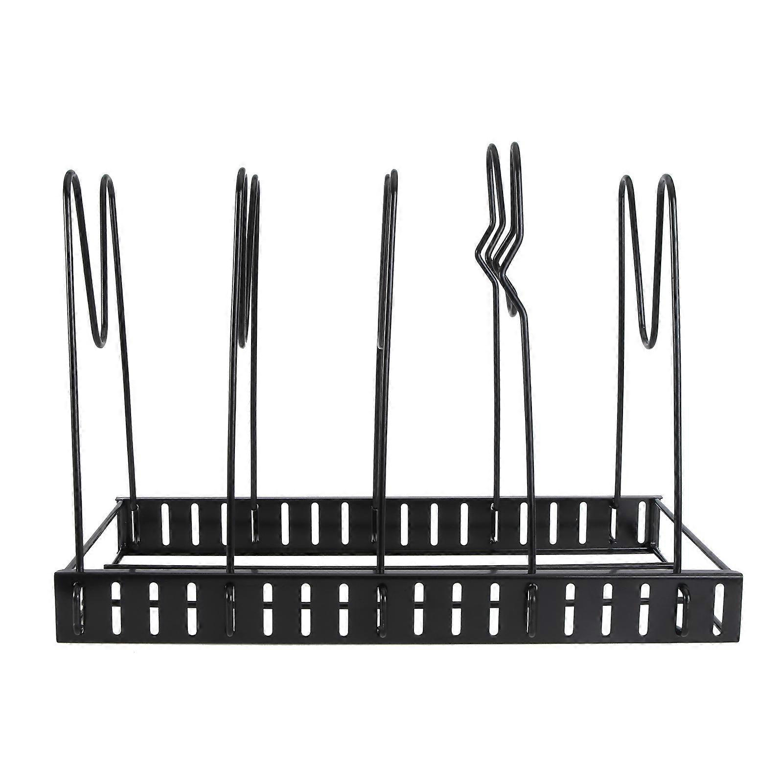 Pot Cover Rack 1Set Black Kitchen Storage Shelf Iron Build for Kitchen Use