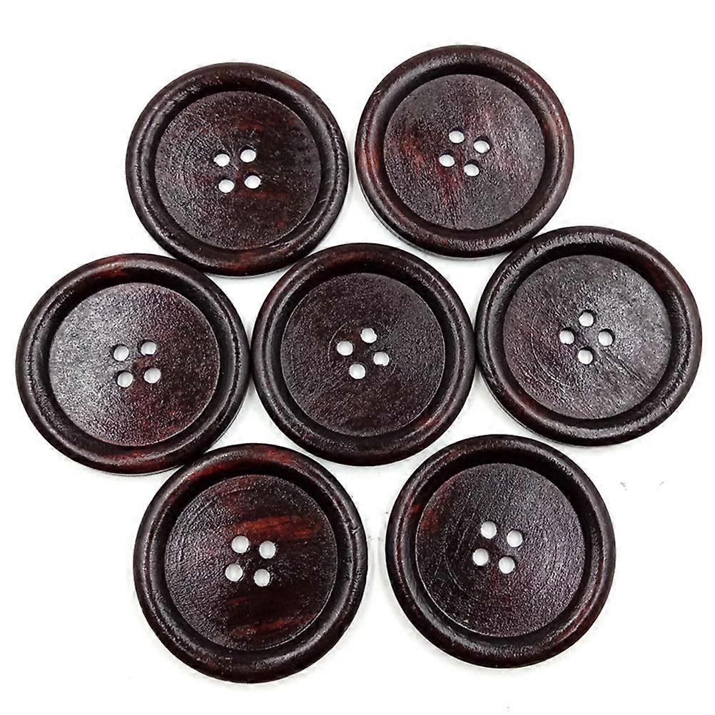 Sewing Button Round Four Hole Wood Material Dark Coffee 50mm Crafts Artists 10Pack