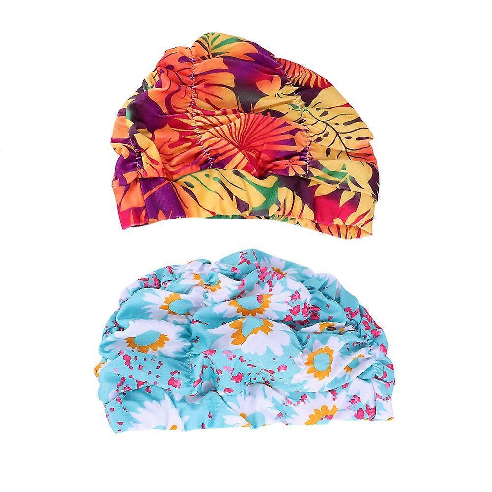 Pleated Swimming Cap For Women Assorted Color Ear Cover Lightweight 2Pcs