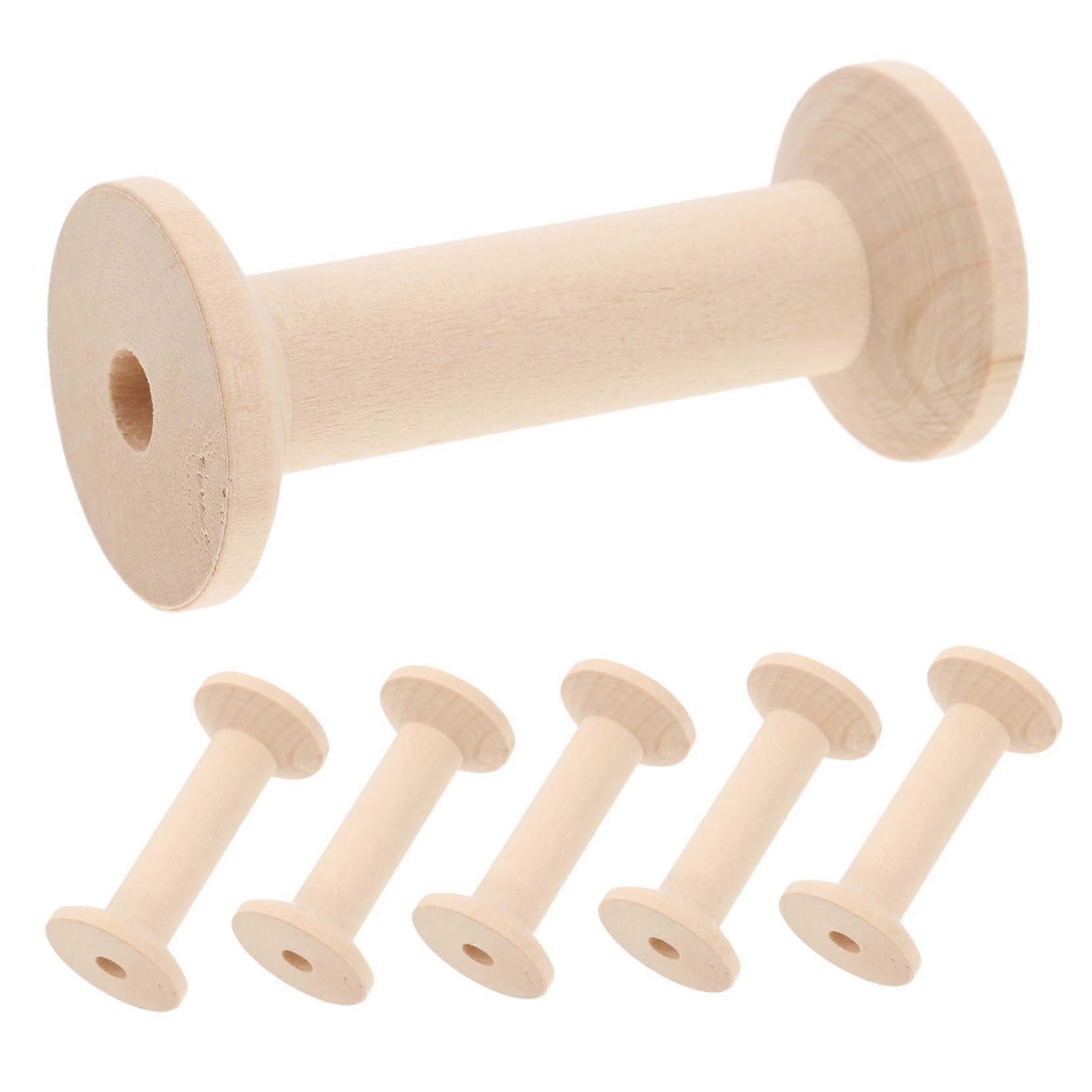 Pack of 6 Mini Wooden Sewing Spools Unfinished Natural Bobbins for Crafts Wire Weaving Yarn Thread Projects