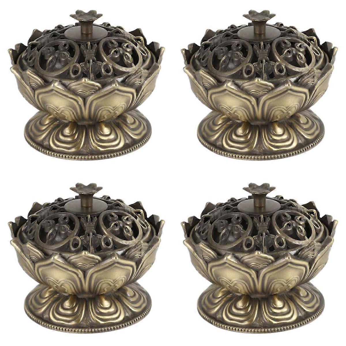 4X Buddha Incense Burner Lotus Flower Incense Holder Handmade Censer for Buddhist Home Office Decora