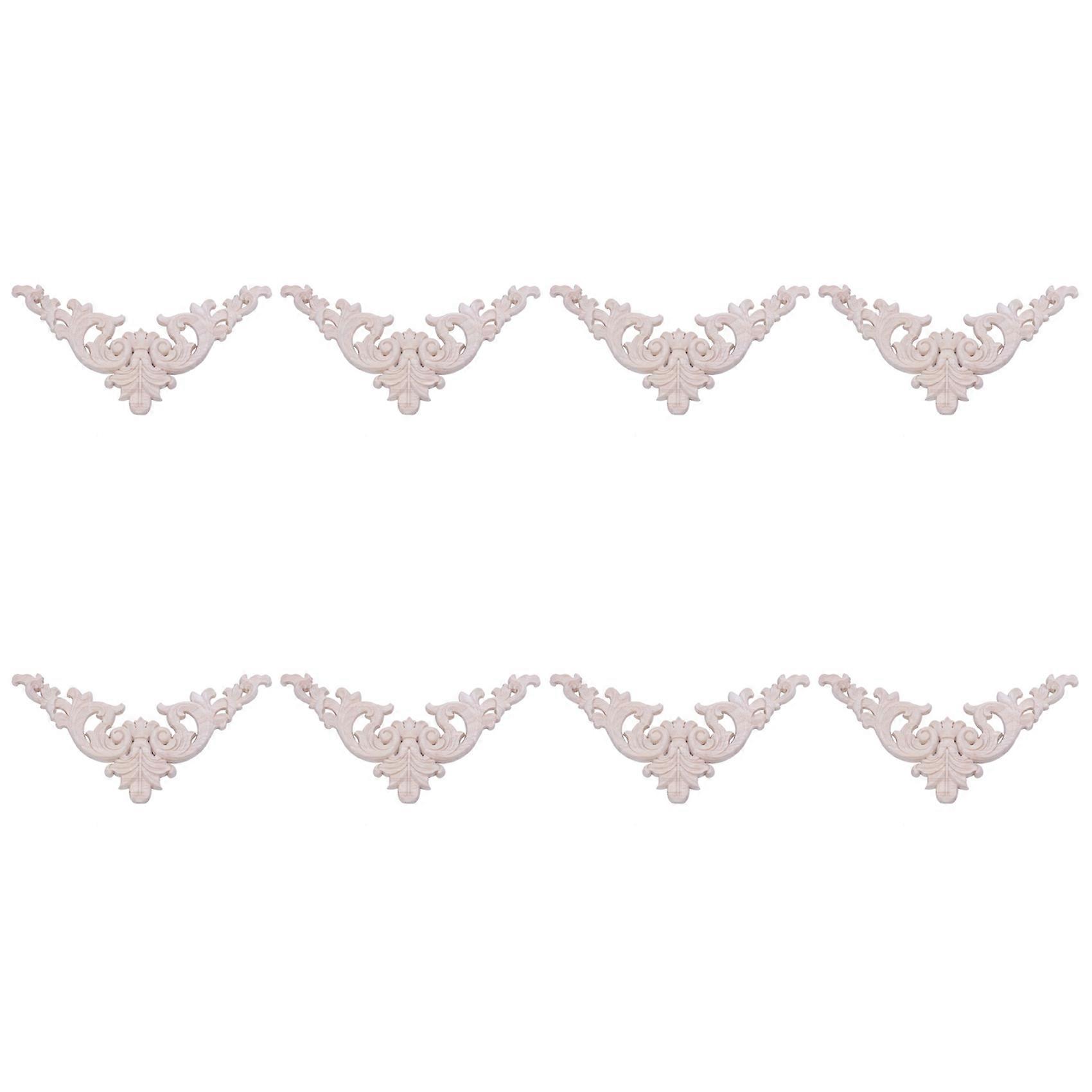 8 Pcs 20 x 20cm Rubber Wood Oak Carved Corner Onlay Applique Cabinet Unpainted
