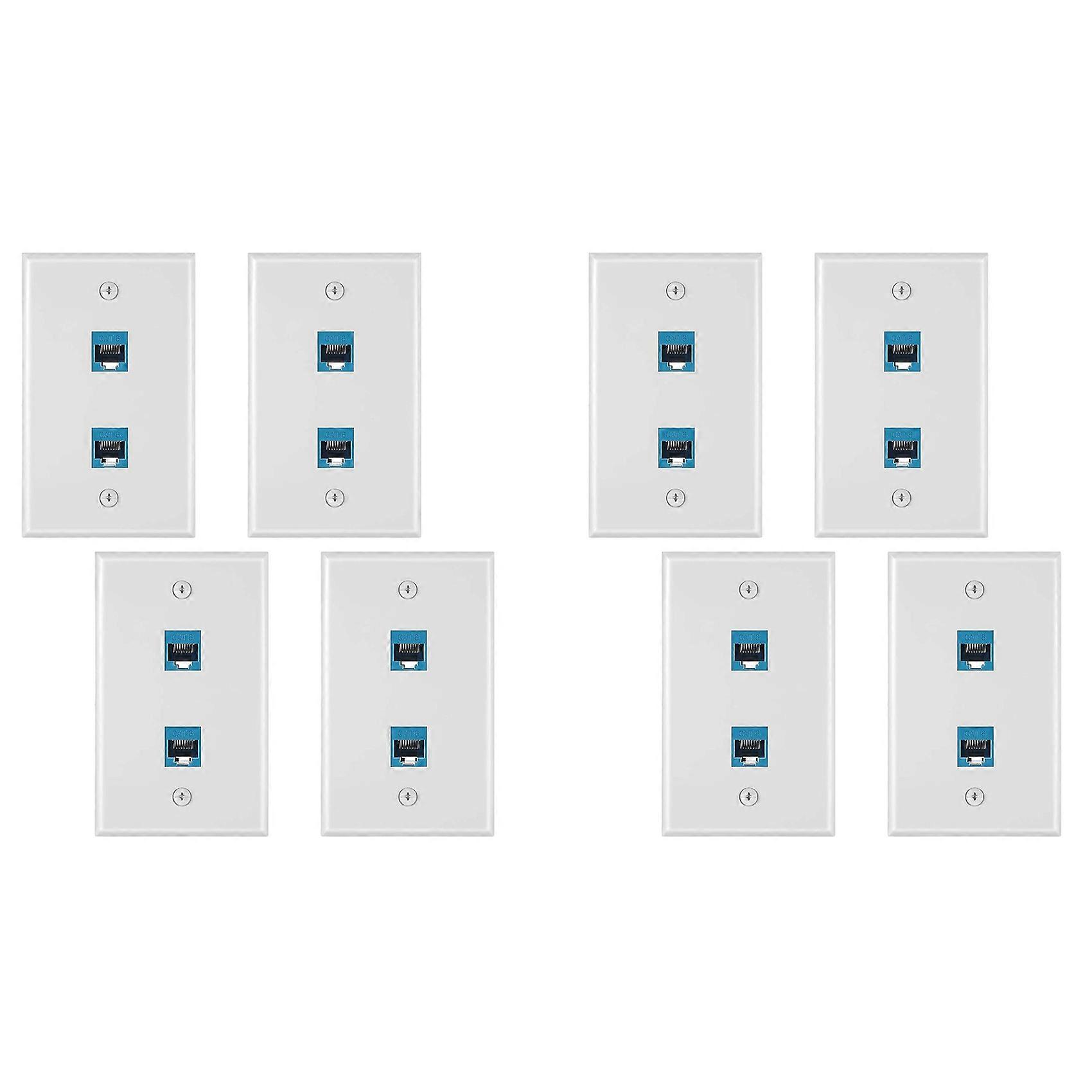 8 Pieces 2 Port Ethernet Wall Plate, RJ45 Cat6 Female to Female Jack Inline Coupler Face Plates