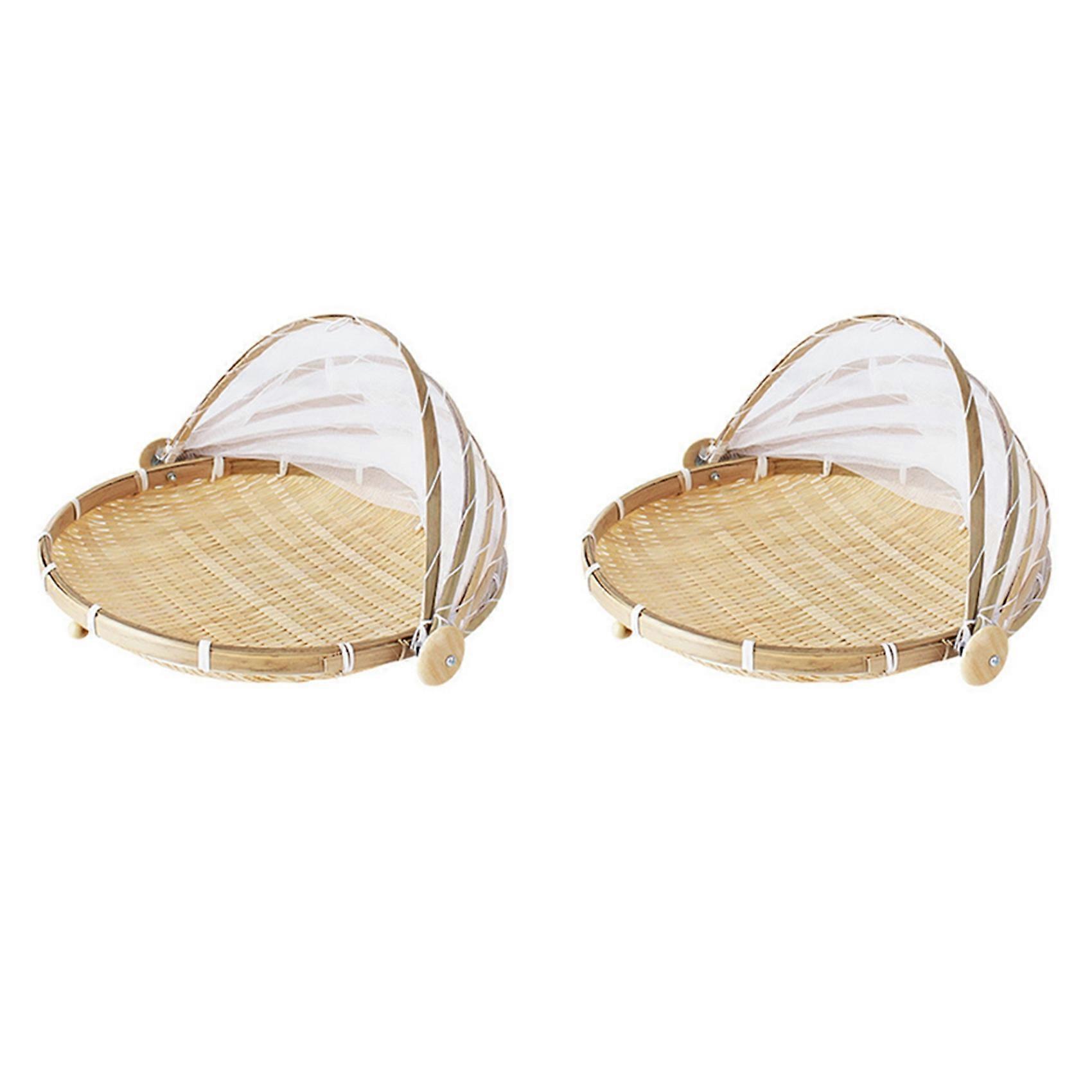 2X Hand-Woven Food Tent Basket Tray Fruit Vegetable Bread Storage Basket Simple Atmosphere Outdoor P