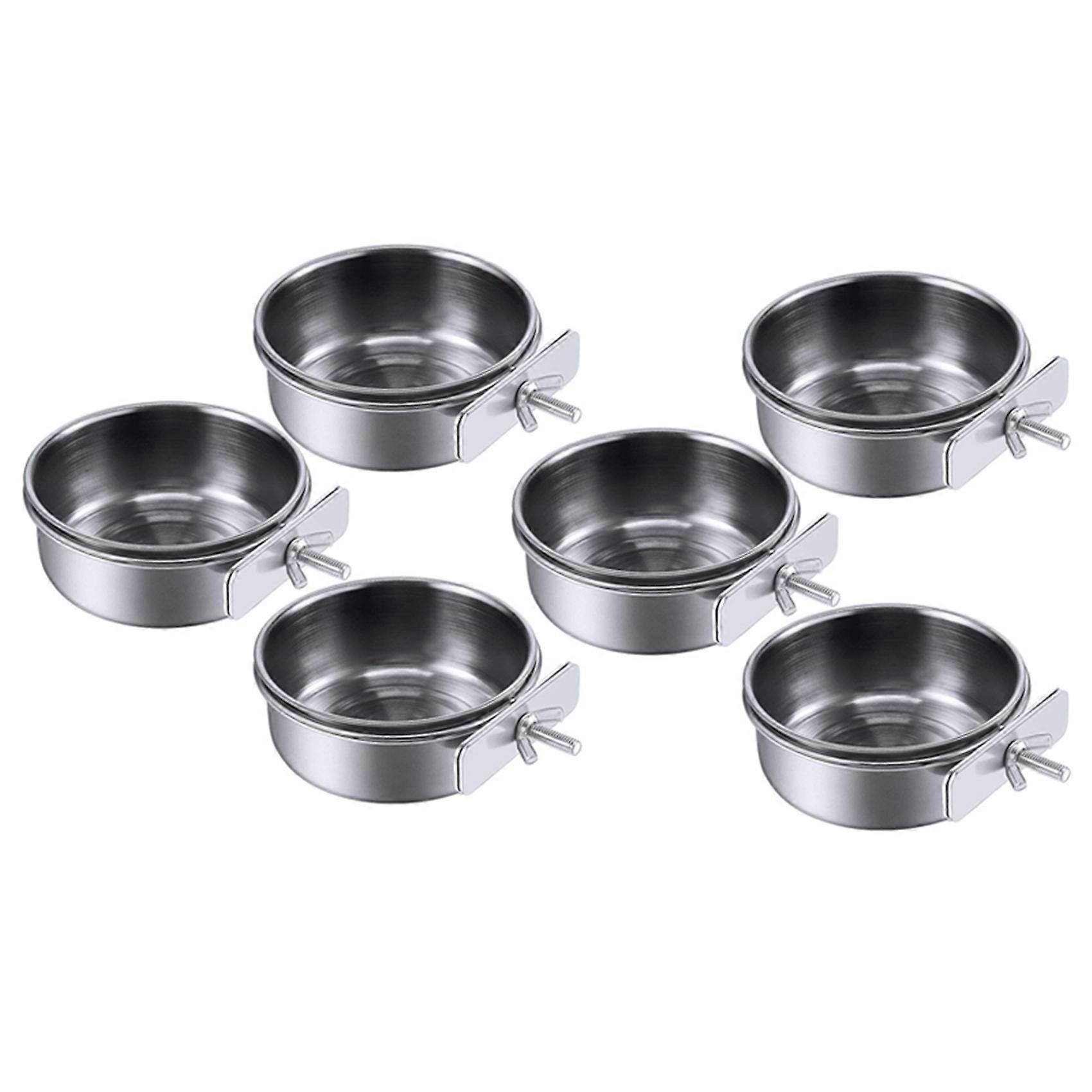 6-Piece Bird Feeder Cup Stainless Steel Parrot Feeder Cup Animal Cage Water Food Bowl S