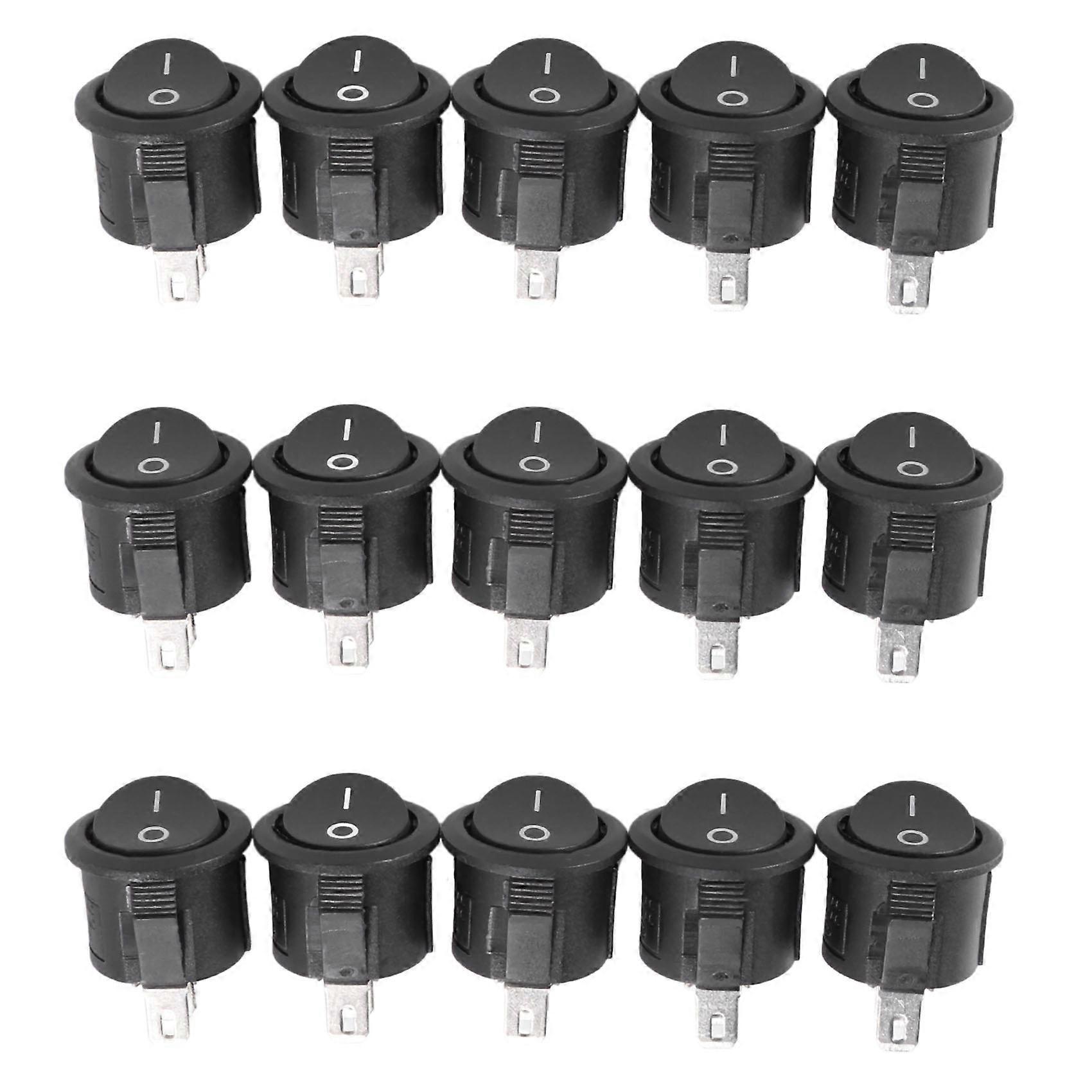 15 Pcs SPST Black Button On/Off Round Rocker Switch AC 6A/125V 3A/250V