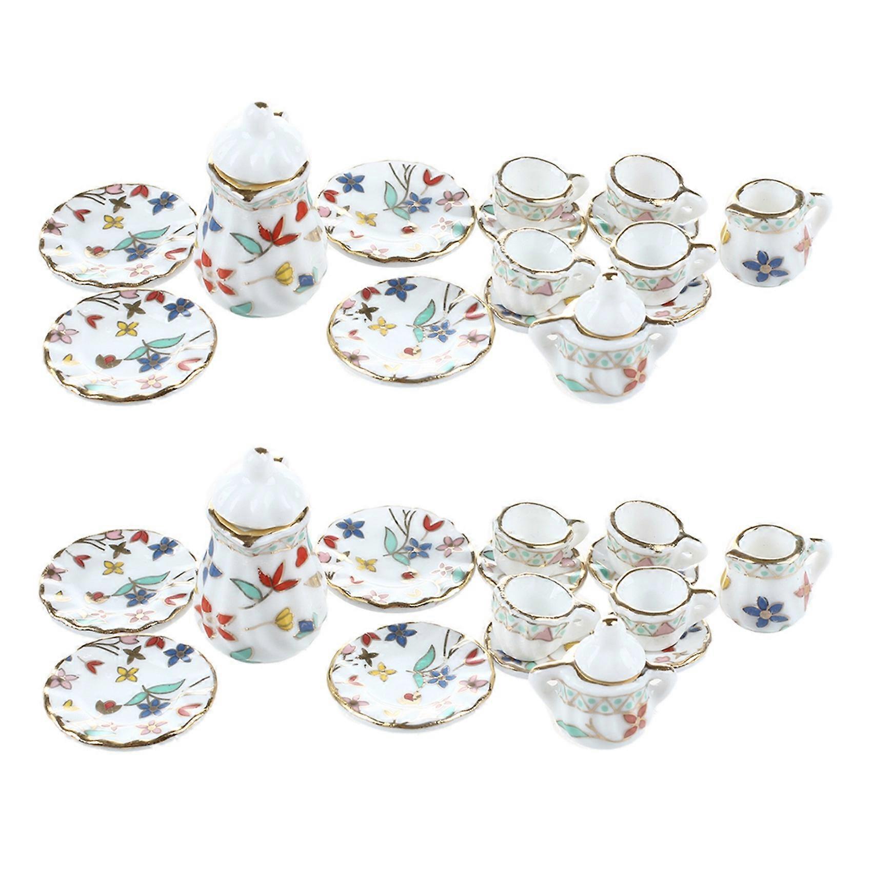 30 Piece Miniature Dollhouse Dinnerware Porcelain Tea Set Tableware Cup Plate Colorful Floral Print