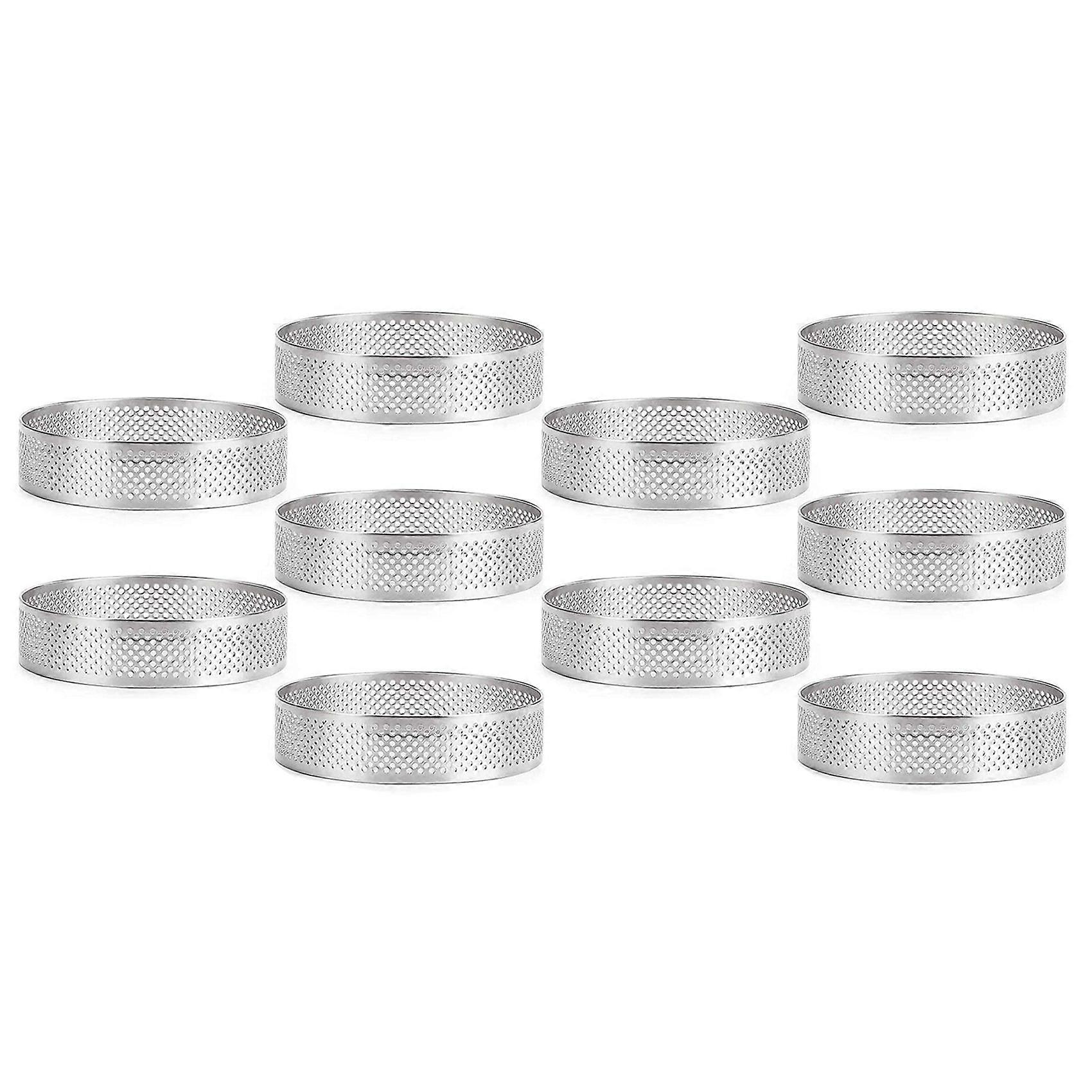 10Stainless Steel Perforated Tart Ring, 5cm Perforated Cake Mousse Ring, DIY Round Tart Rings for Ba