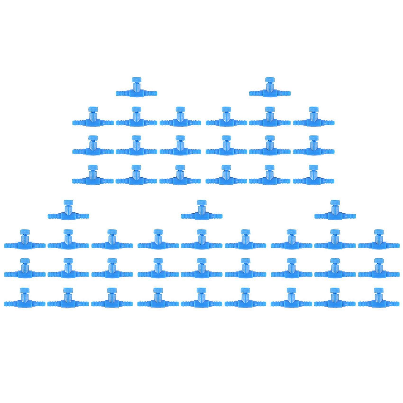 50 Pieces Plastic Aquarium Fish Tank 2 Way Air Pump Control Valves, Blue