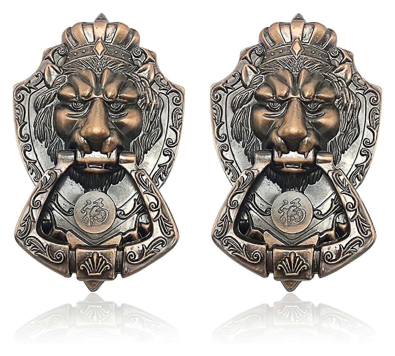 Brass Lion Head Door Knocker - 2 Pack, Antique Bronze Finish, For Front Door, Drawer, Wardrobe Or Chair Decoration