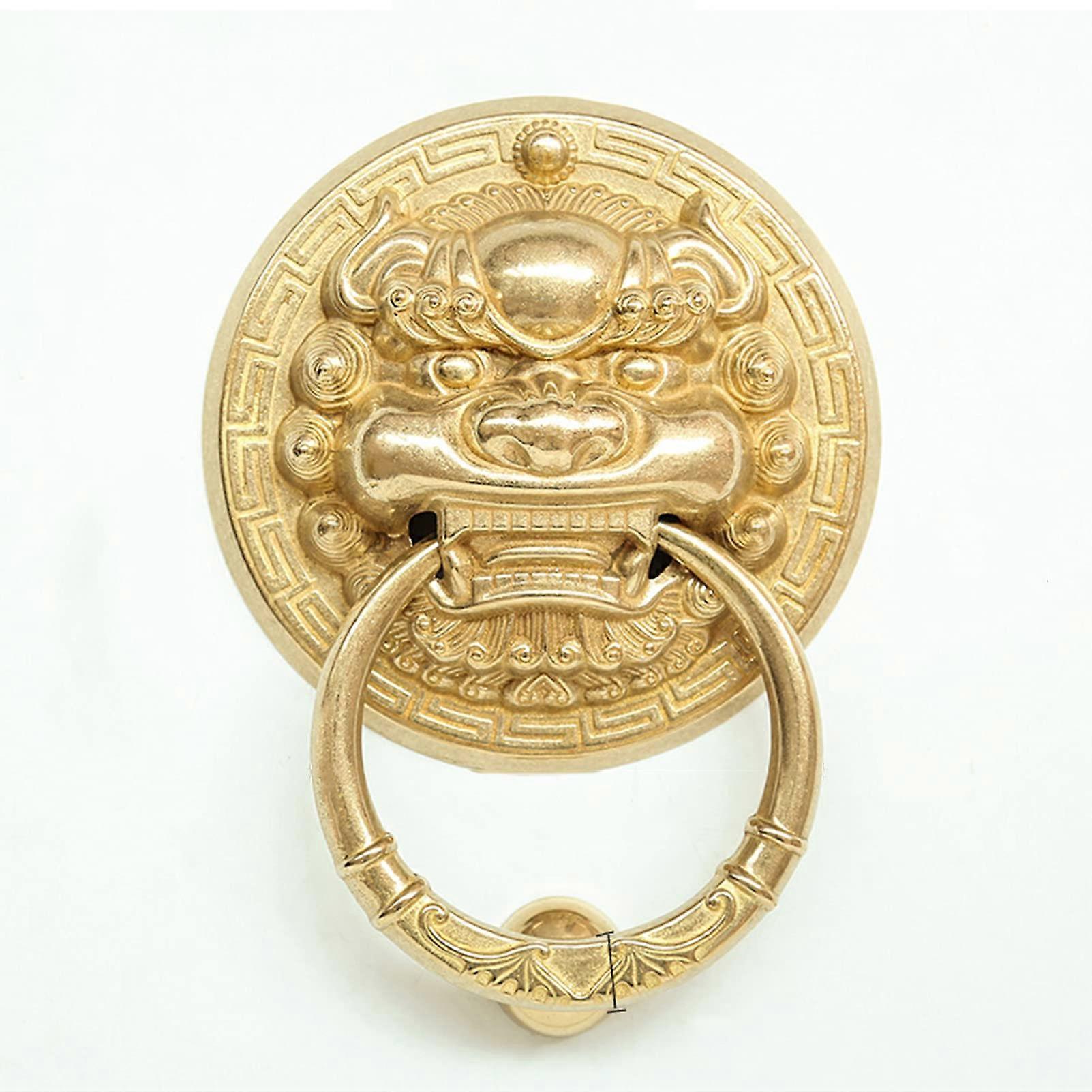 Brass Door Knocker, Antique Bronze Animal Face Design, Rustproof Traditional Door Handle, 15.5 cm Diameter