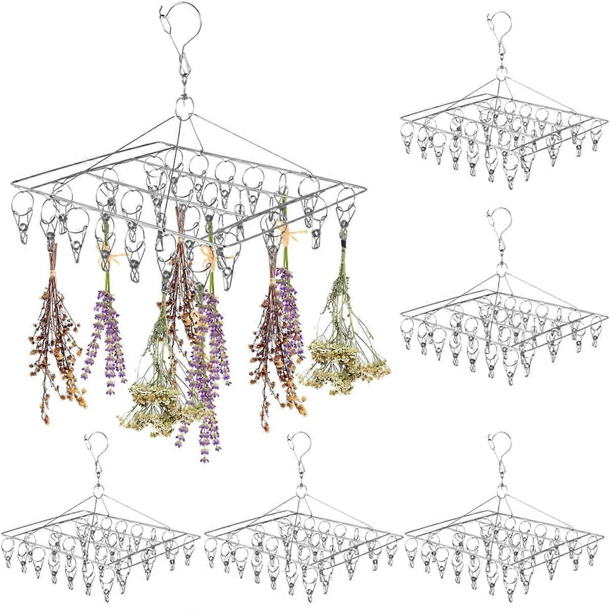 6pcs Stainless Steel Herb Drying Rack with 30 Clips, Windproof, Space-Saving for Aromatic Herbs, Sp