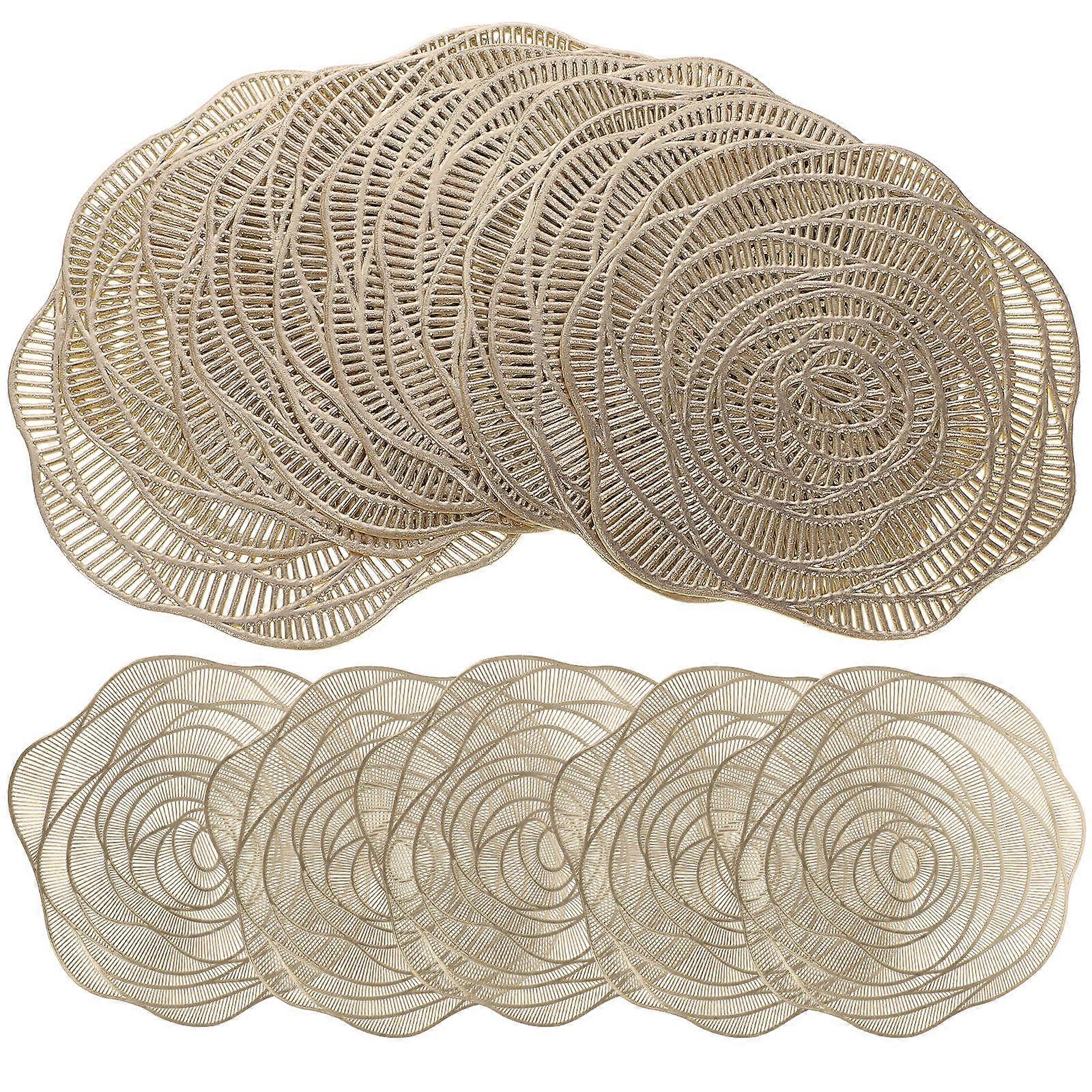Golden Vinyl Rose Placemat and Coaster Set for Kitchen Use 1Set